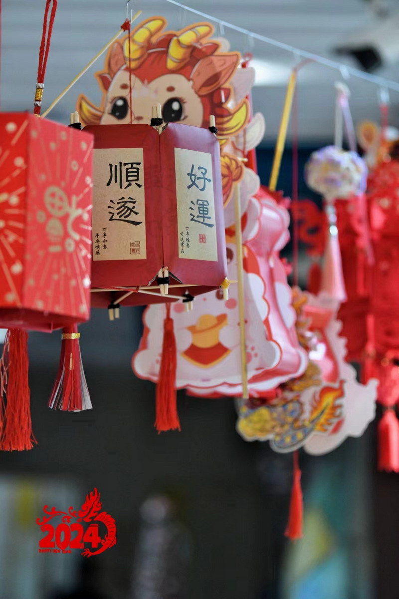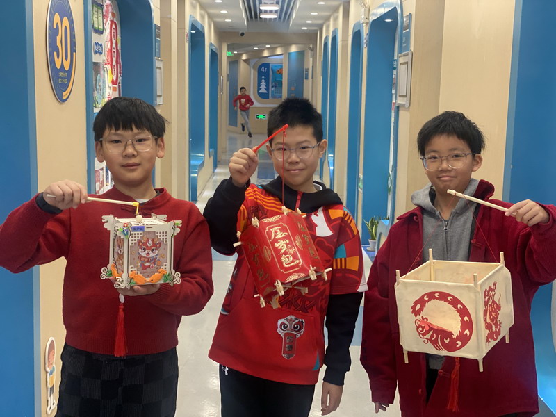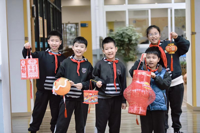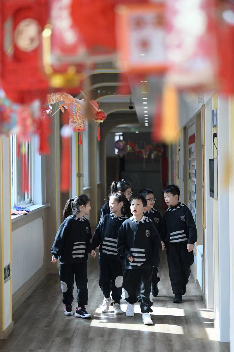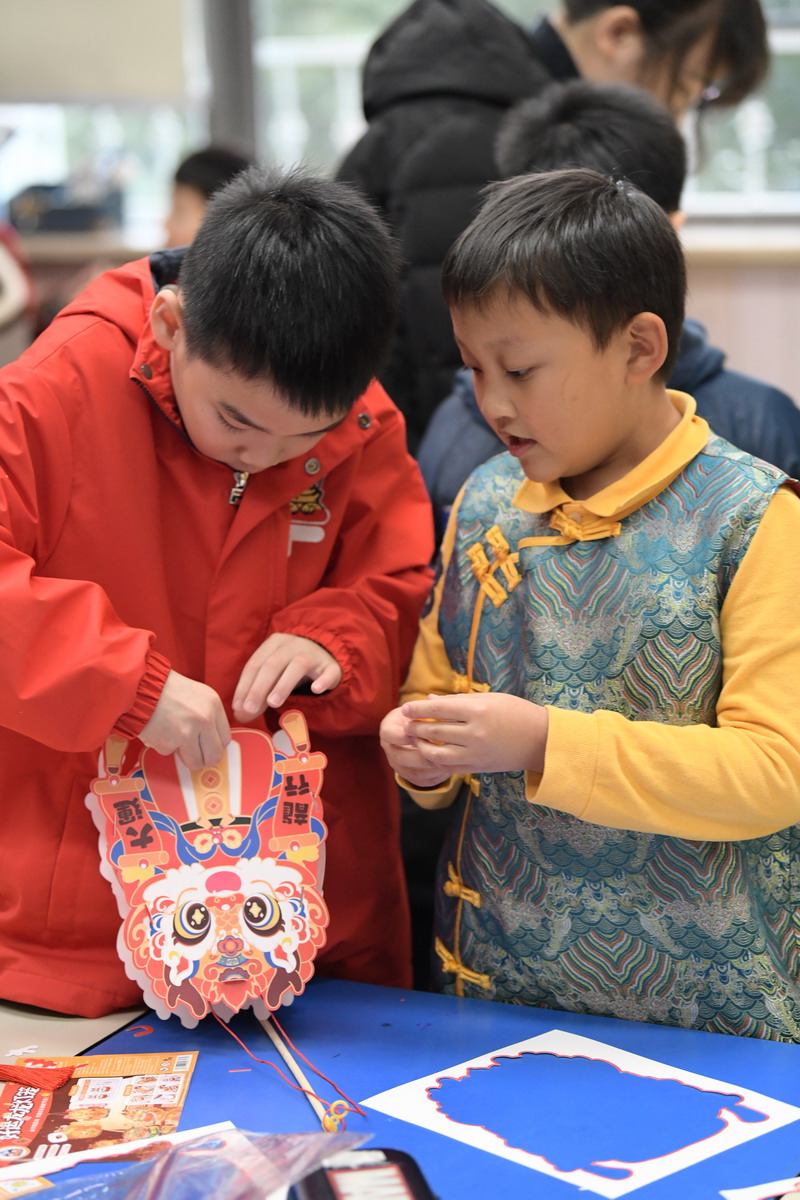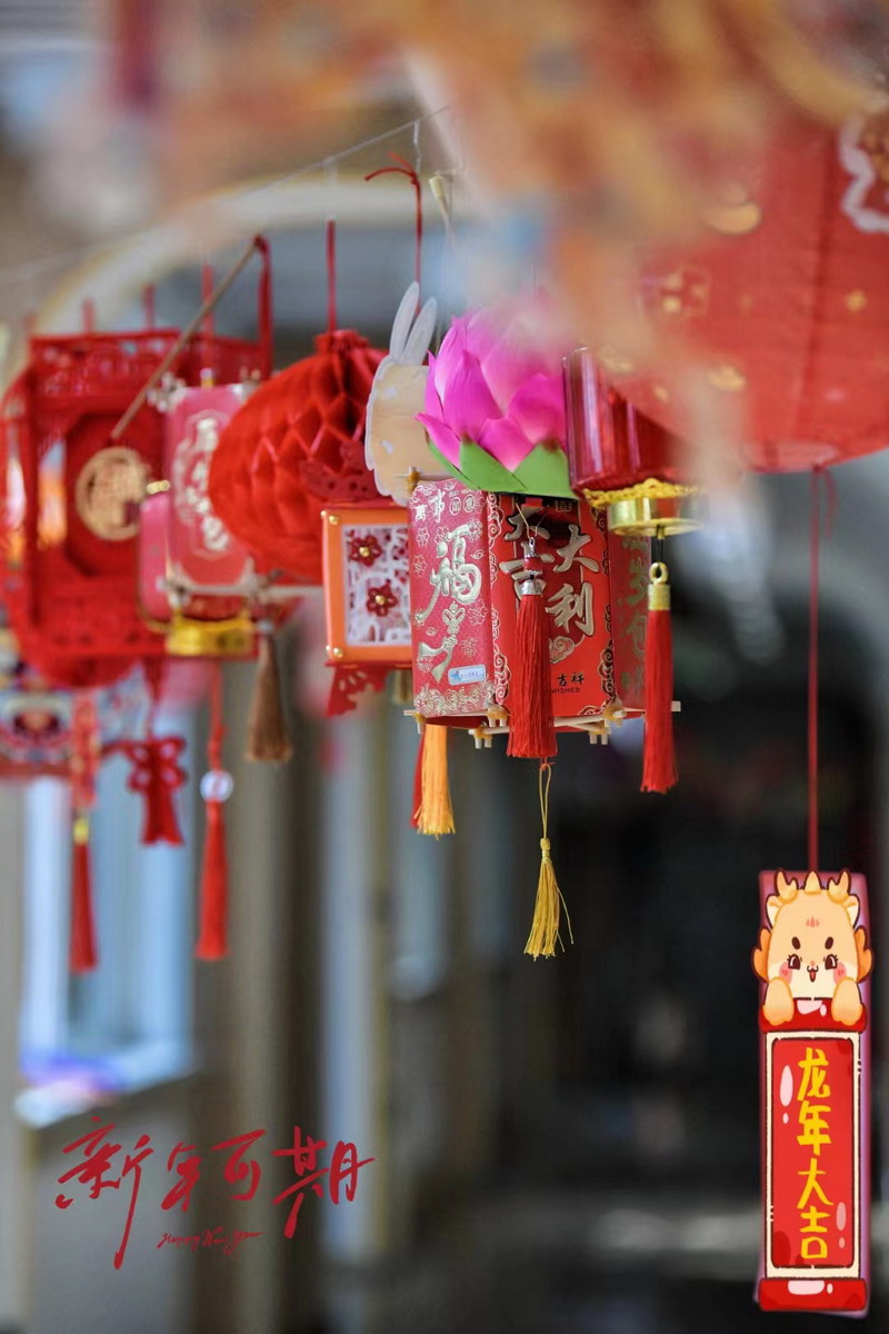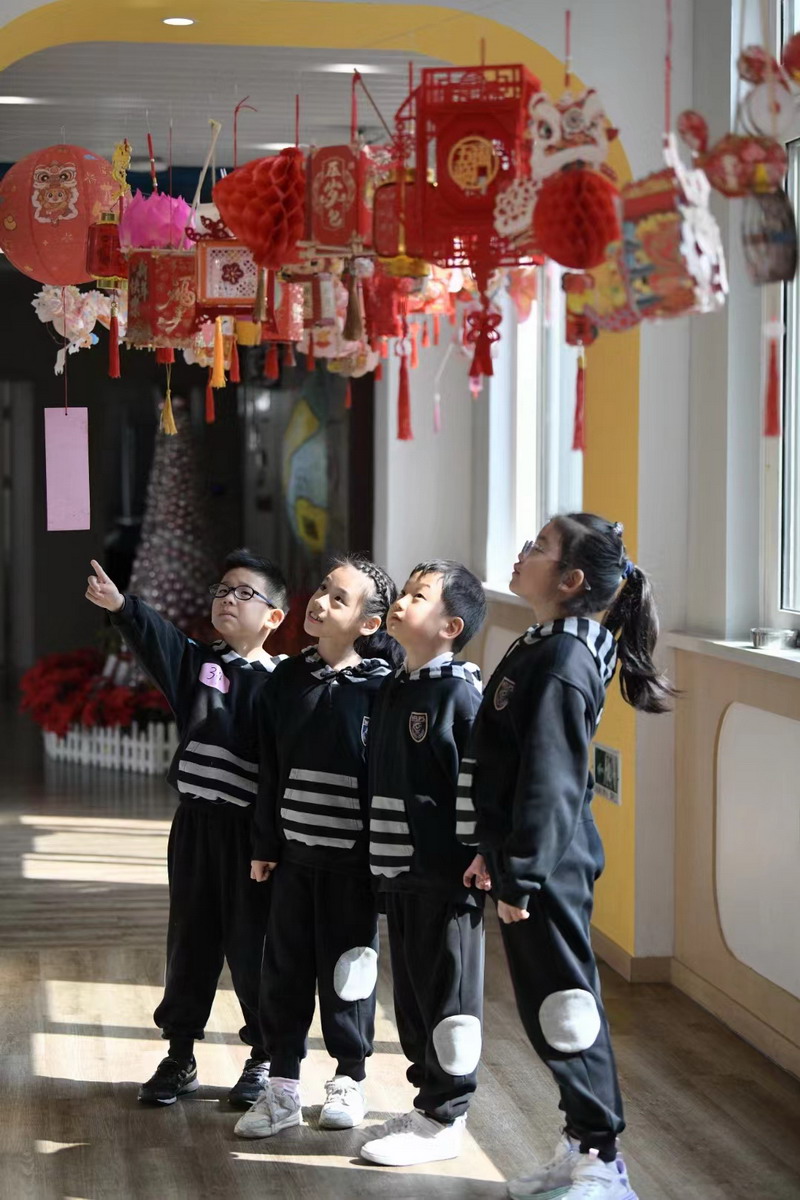 四年級的同學們則負責掛燈籠。寒假里,他們認真制作了形狀各異的燈籠。開學伊始,他們小心翼翼地將新年燈籠掛在校園里,讓校園變得更加溫馨和喜慶。來來往往的師生們駐足欣賞、討論,感受傳統燈籠的魅力。