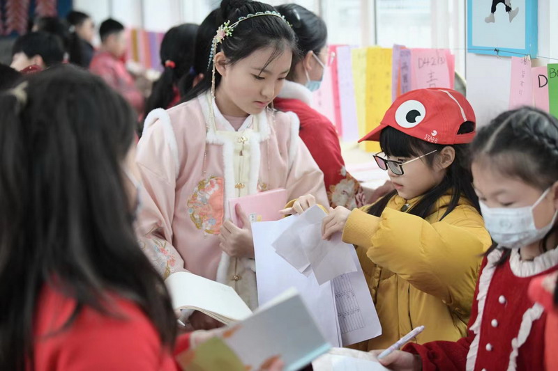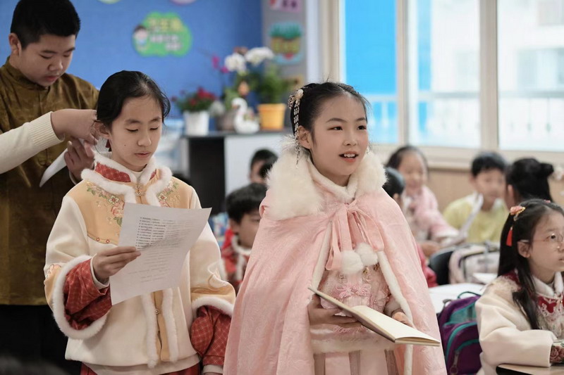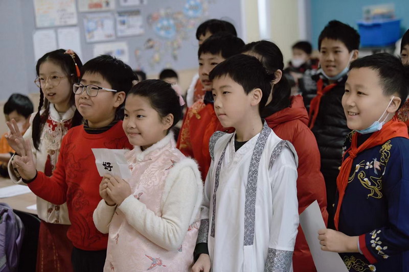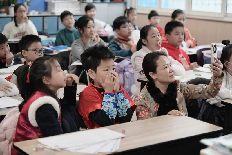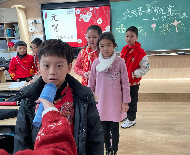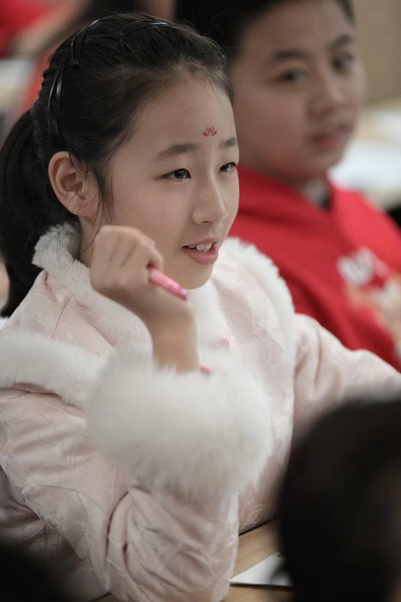 五年級的孩子們則進行了一場別開生面的飛花令比賽。他們分組進行,輪流說出與“花”、“月”、“春”等字相關的詩句。比賽現場緊張而激烈,孩子們思維敏捷,對答如流,展現出了深厚的詩詞儲備和良好的應變能力。