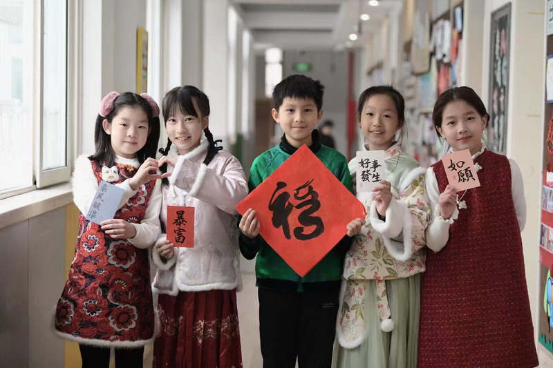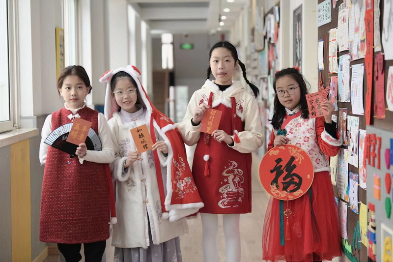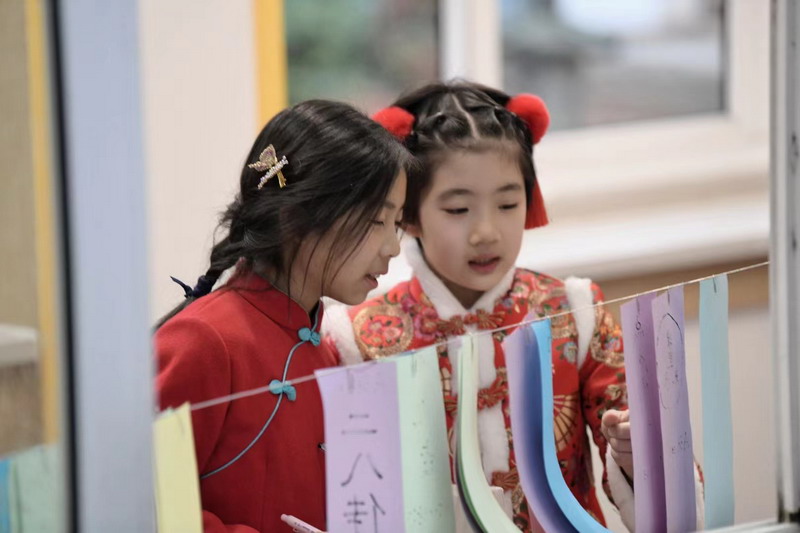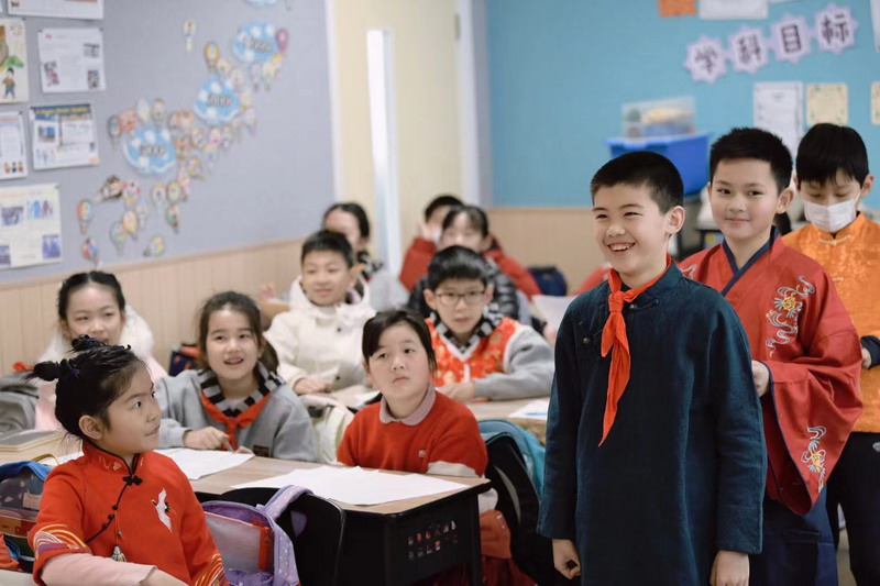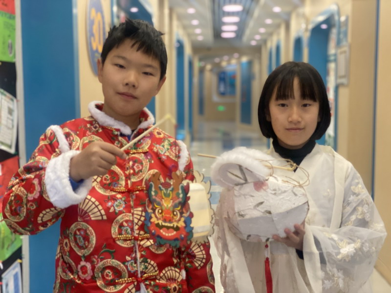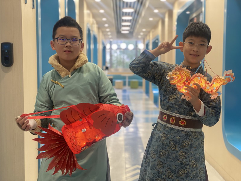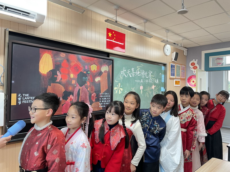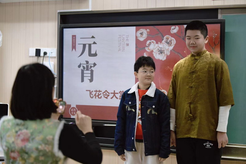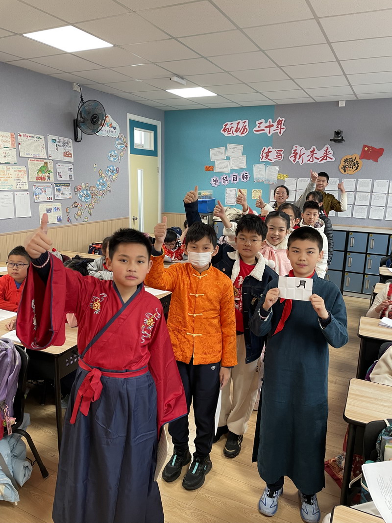 元宵節,又稱“上元節”或“燈節”,是中國傳統的重要節日之一。為了讓學生們更好地了解并體驗元宵節的傳統文化,世外小學特意組織了一系列豐富多彩的活動。全校師生身穿各式各樣的節日服裝,從漢服到民族服飾,宛如一場絢爛的服飾盛宴,為節日增添了濃厚的氛圍。同時,教室的外墻和小當家黑板上也畫上了與元宵節相關的圖案和文字,如兔子、月亮、湯圓等,為節日增添了更多的文化內涵。