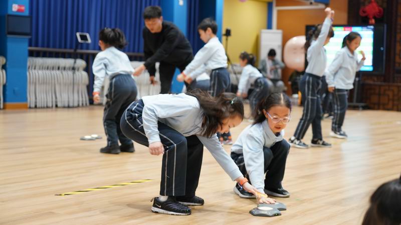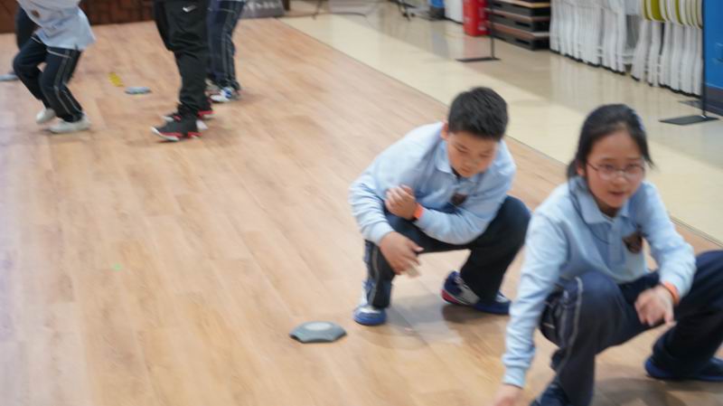 在體能練習(xí)環(huán)節(jié),同樣結(jié)合光電球,創(chuàng)編出慢跑、螞蟻爬以及矮子走等各種體能游戲練習(xí)。