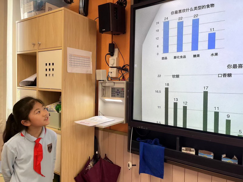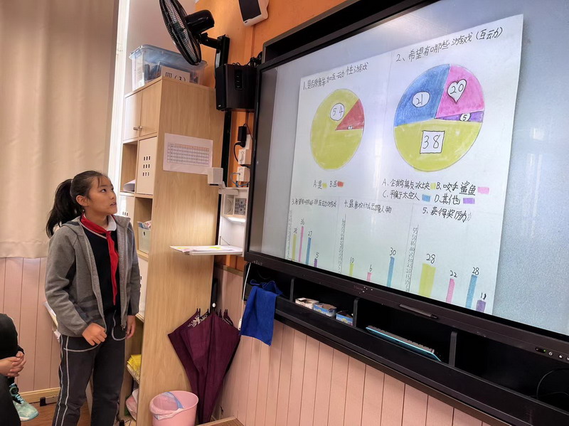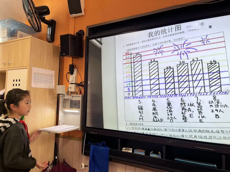 收回問卷后,孩子們緊鑼密鼓地統計數據,并根據不同統計圖的特點、問題背景選擇合適的統計圖進行繪制。從呈現的統計圖中,學生分析數據,并得出結論。