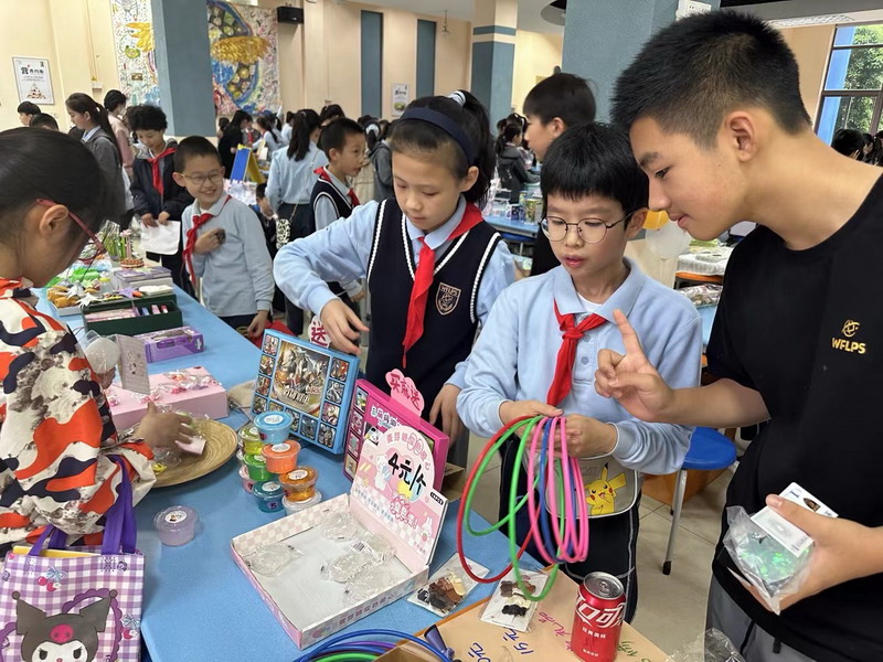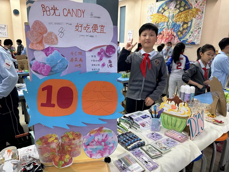 2023學年四年級數學項目化學習“世外集市”再度啟航。學生通過自己開設店鋪,售賣商品,將數學知識應用于生活實際中。