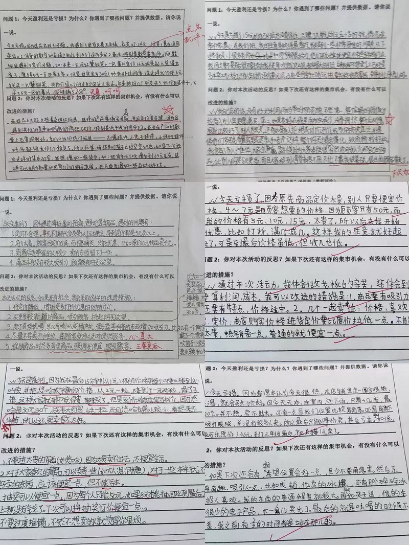 世外集市完美落幕。孩子們統計銷售數量,細數營業額,計算利潤。幾家歡喜幾家愁,孩子們進行了反思總結。