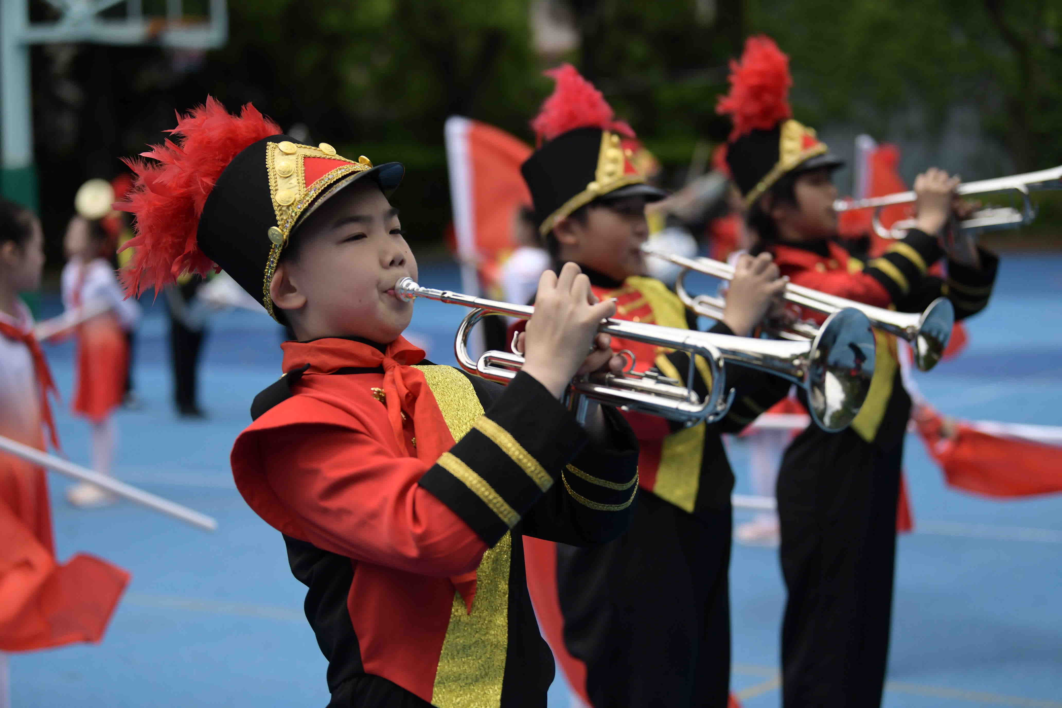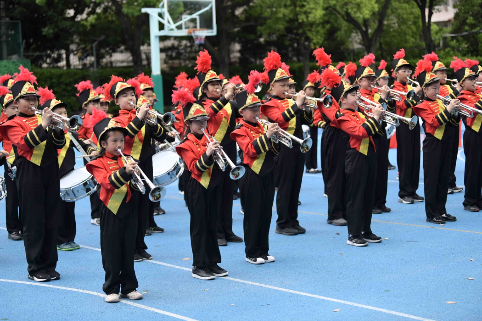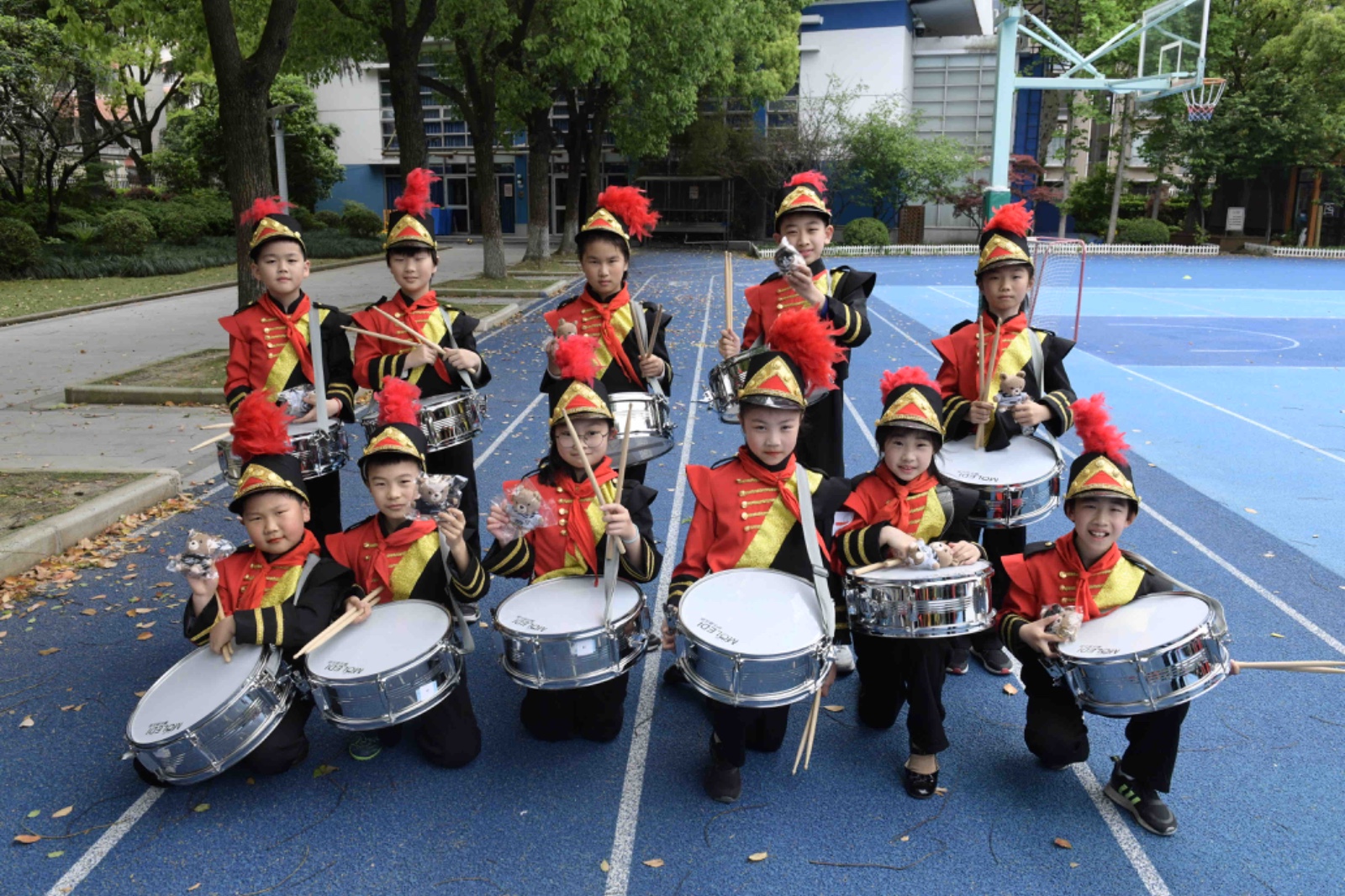 4月25日,春風和煦,陽光明媚,高一小學的操場上熱鬧非凡。這一天,我校的73名少先隊員組成的鼓號隊,以挺拔的站姿、燦爛的笑容、矯健的步伐、整齊的隊形,以及激昂的鼓點和嘹亮的號聲,為“鼓號鏗鏘明志向 領巾飄揚匯幸福”徐匯區(qū)少先隊鼓號隊驗收大賽獻上了一場精彩的演出。