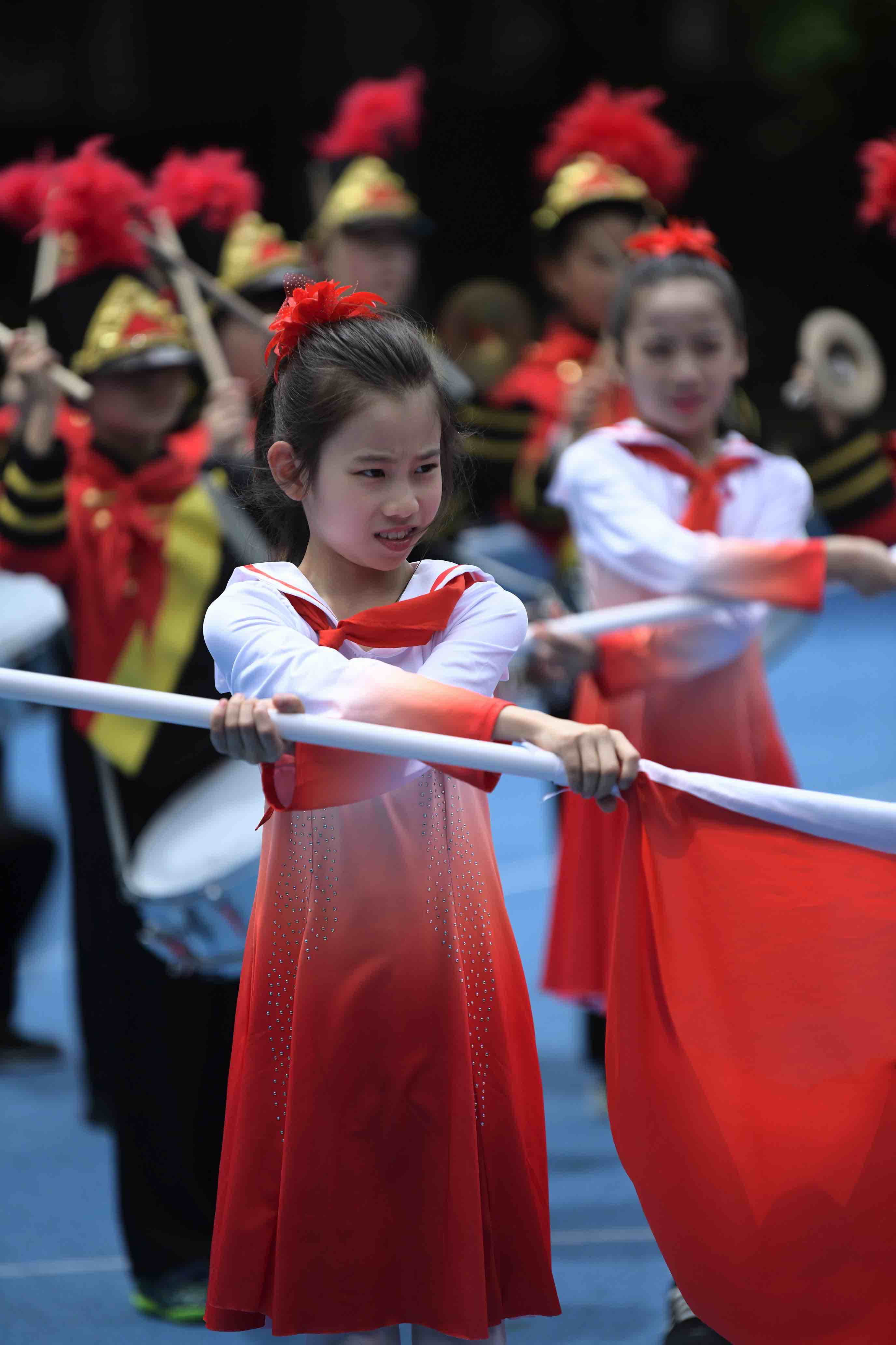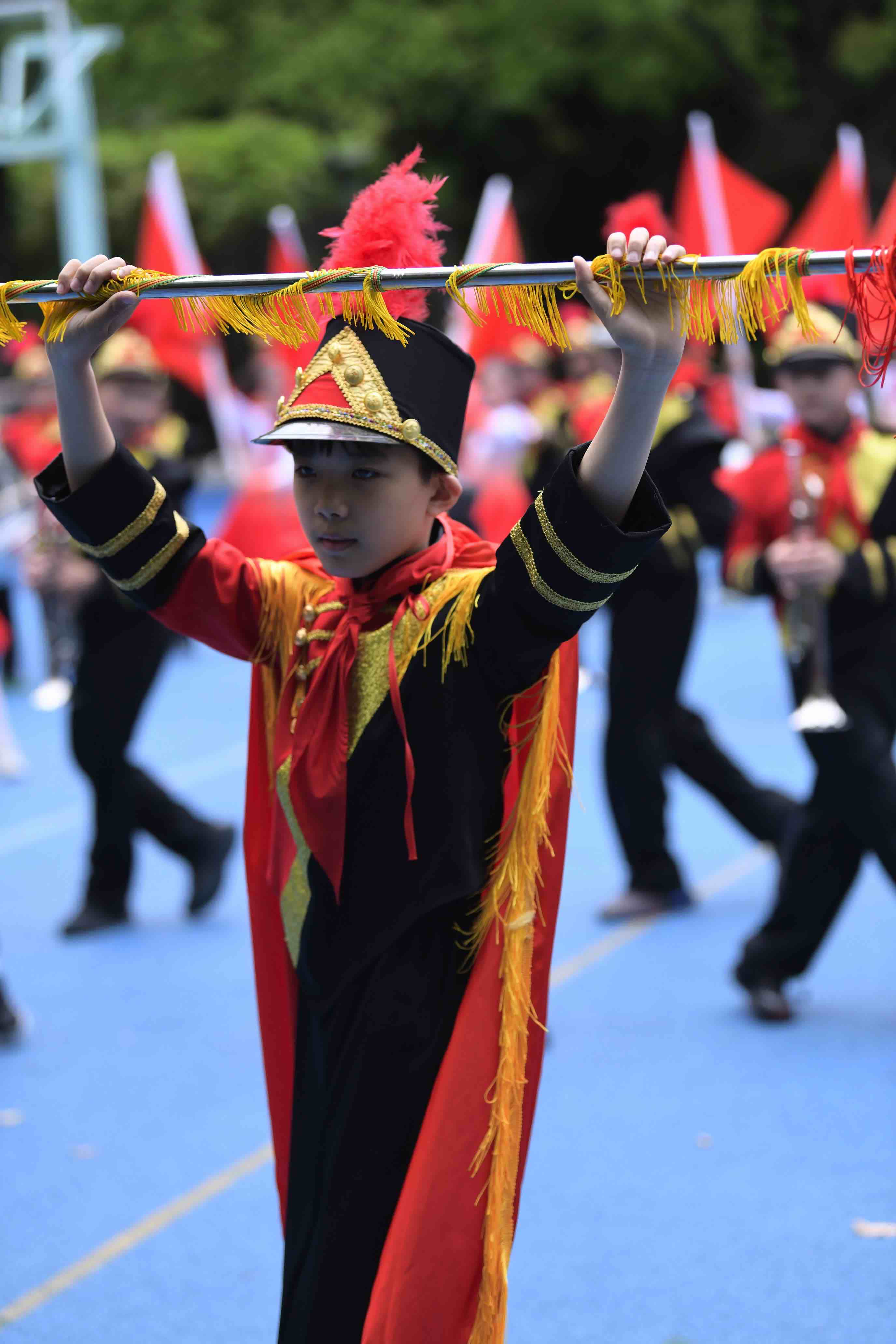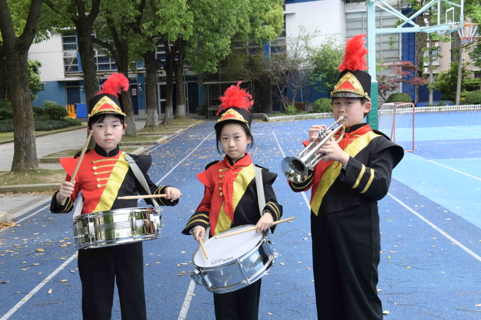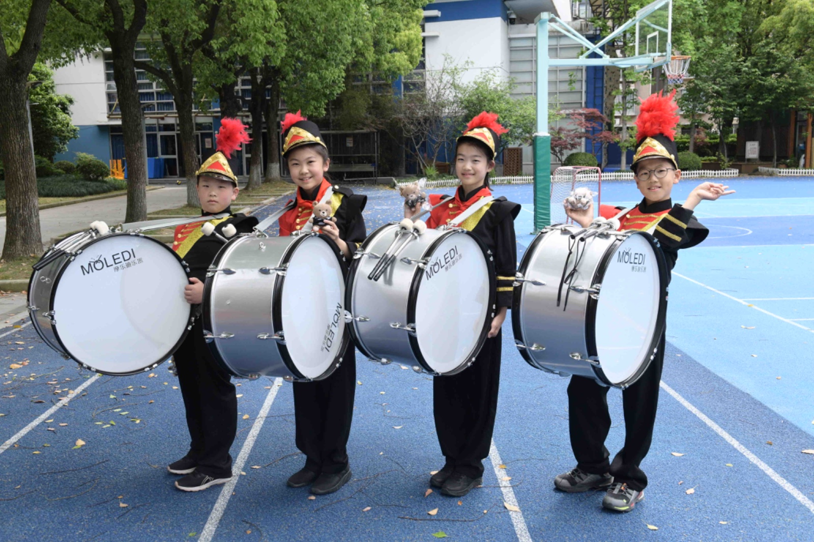 4月25日,春風和煦,陽光明媚,高一小學的操場上熱鬧非凡。這一天,我校的73名少先隊員組成的鼓號隊,以挺拔的站姿、燦爛的笑容、矯健的步伐、整齊的隊形,以及激昂的鼓點和嘹亮的號聲,為“鼓號鏗鏘明志向 領巾飄揚匯幸福”徐匯區(qū)少先隊鼓號隊驗收大賽獻上了一場精彩的演出。
