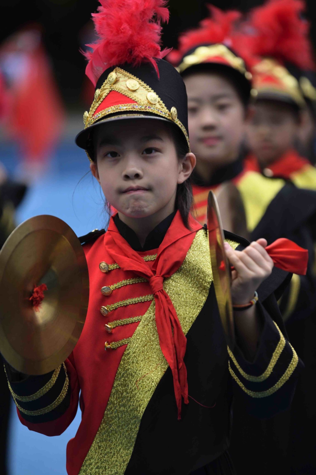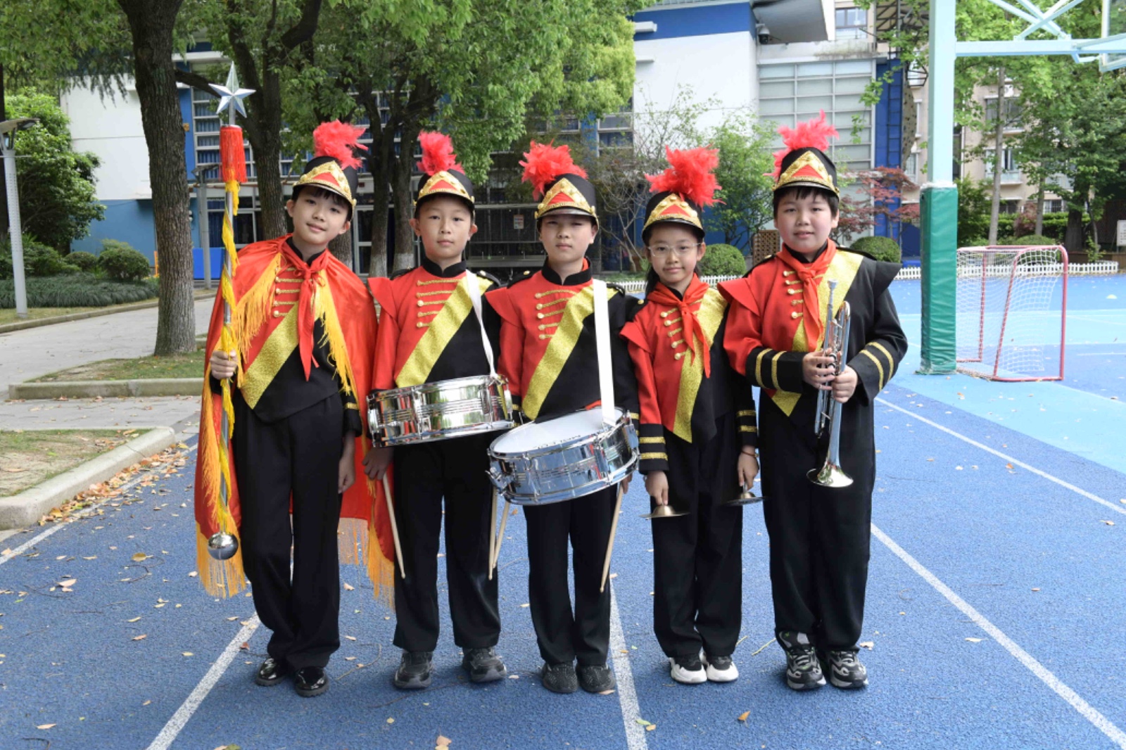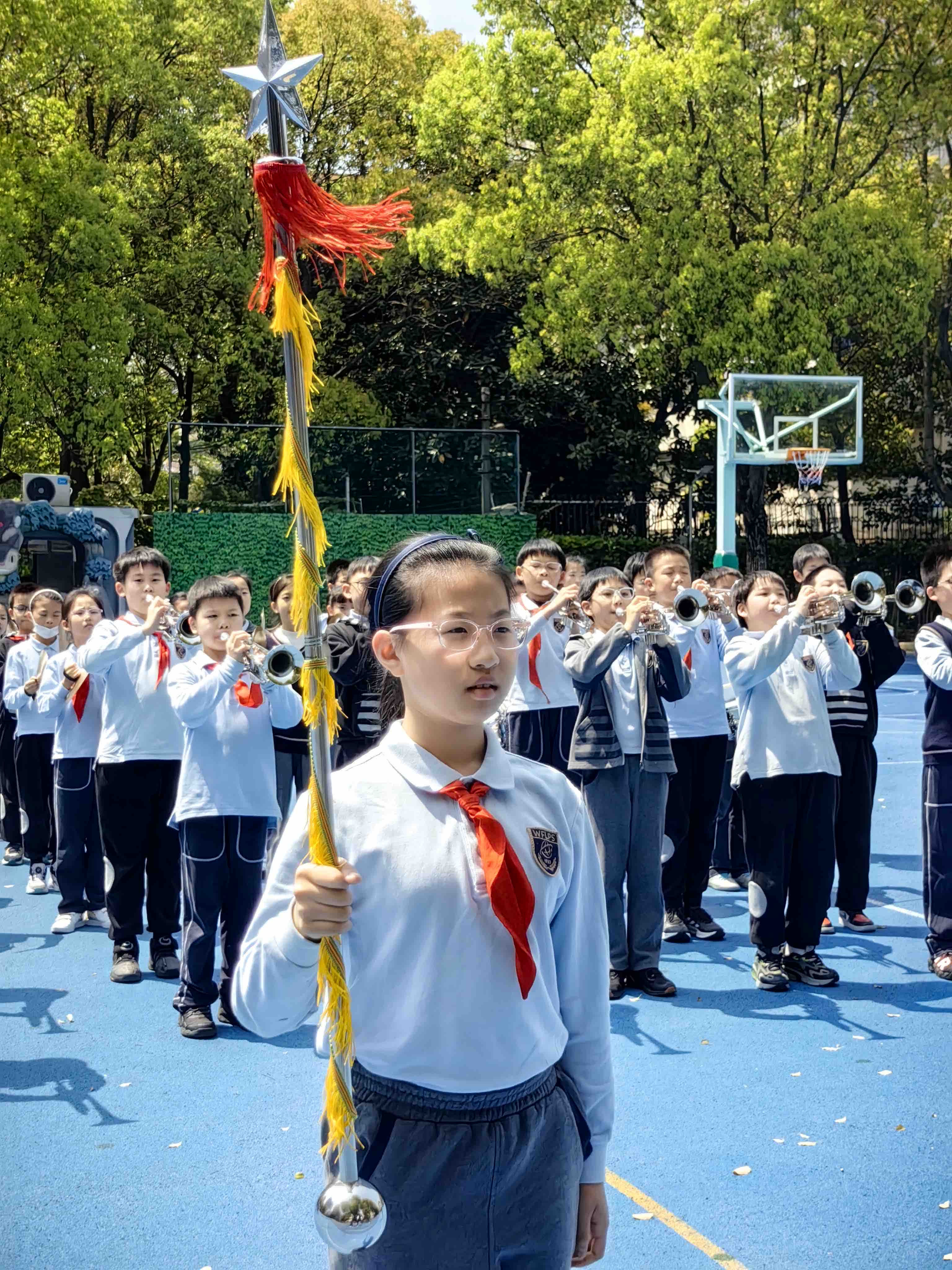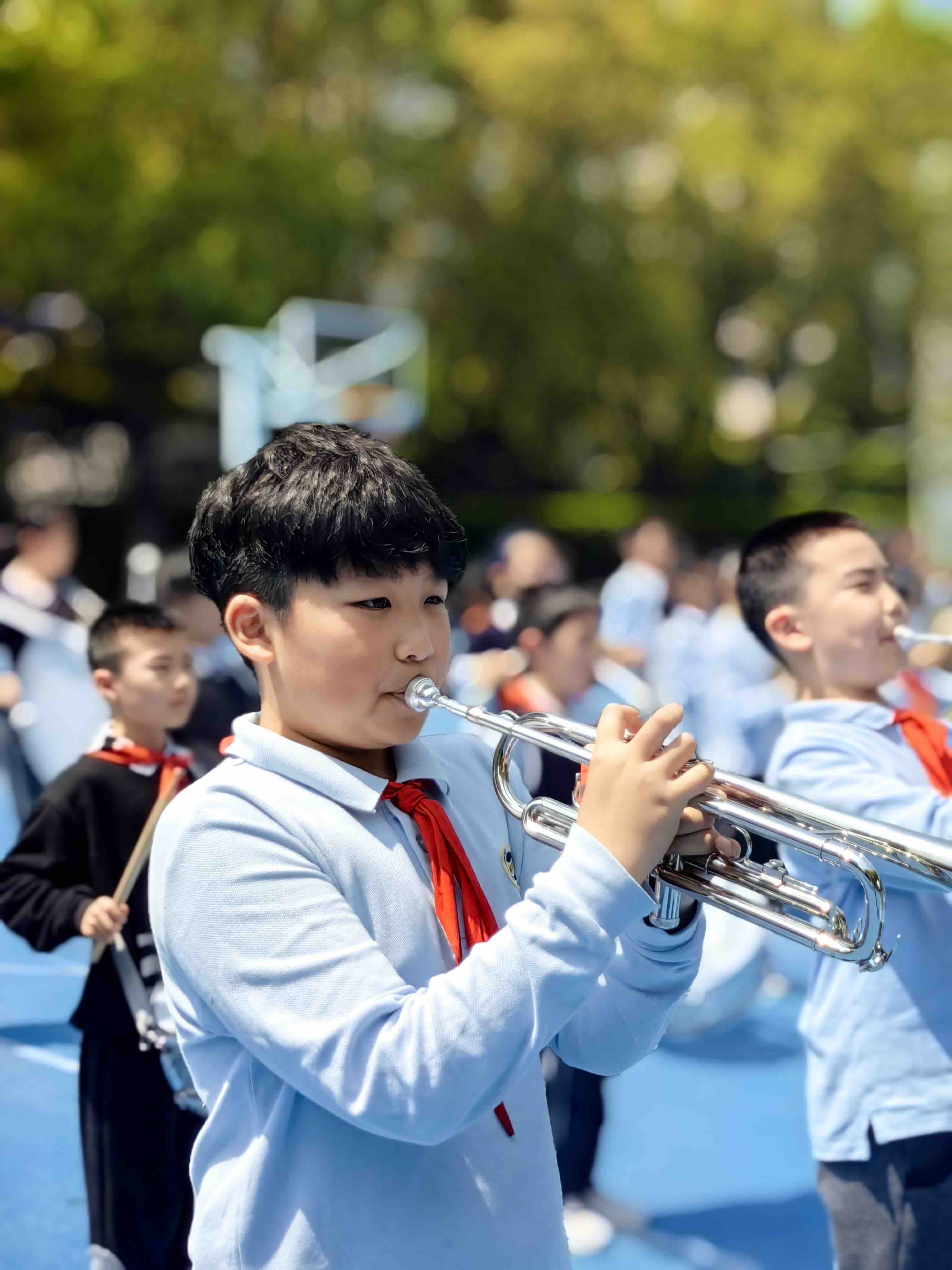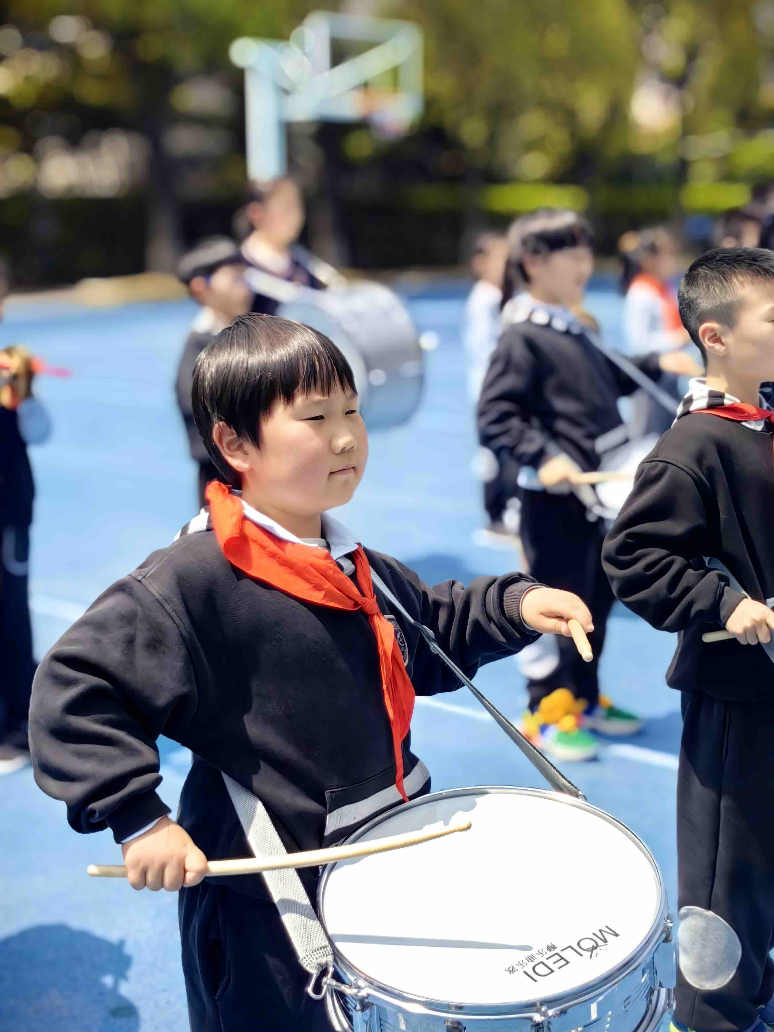 大隊輔導員胡雪緣:鼓號隊是少先隊組織的象征。哪里有鼓號聲,哪里就有少先隊。隊伍建設從0到1,十分不易,要感謝每位參與者的辛勤付出。每個午間,隊員們匆匆吃好午飯就趕來訓練;每個晚上,家長們督促孩子練習,在群里打卡;每個周末,老師們認真復盤規(guī)劃下周的訓練……從剛開始的“克服萬難”,到后面的“深深著迷”,隊員們從“初識”到“熱愛”。“今天要不要加練?”“你看我自學了一首新曲子!”“下次比賽是什么時候?”一句句童真的話語,展現(xiàn)了大家對鼓號隊的熱愛。隊員們在鼓號隊中快樂學習、不斷成長,愿我們這個大家庭砥礪奮進,再創(chuàng)輝煌!