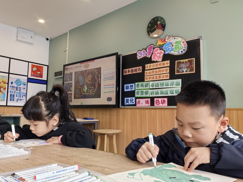 美術組三位老師,用輕松有趣的方式引導學生掌握繪畫的要領,激發了學生對藝術創作的興趣和探索。孩子們在愉快的氛圍中,全情投入各項活動之中,一幅幅充滿想象力的生動的畫作躍然紙上。