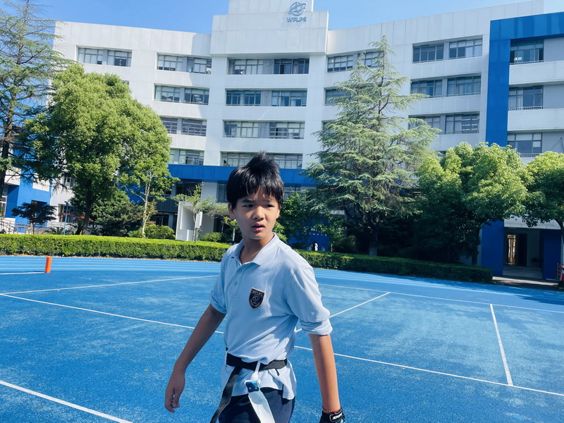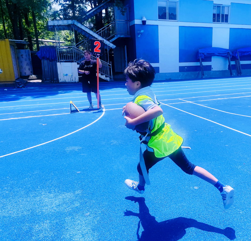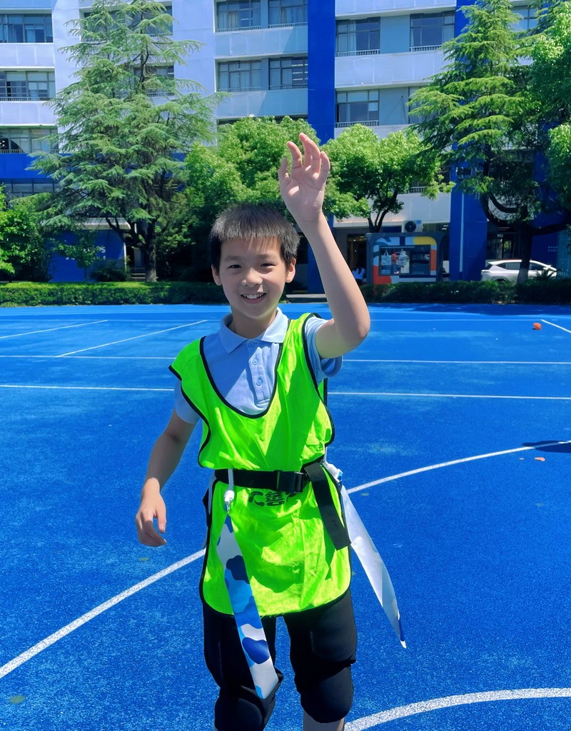 五年級P5C班的高海清同學,自四年級起便與橄欖球結下了不解之緣。無論是課上的裝備橄欖球訓練,還是課后的腰旗橄欖球社團活動,他都全身心地投入其中,享受每一次與隊友并肩作戰的時刻。高海清坦言,他深深地熱愛著這項運動。在橄欖球的世界里,他不僅感受到了運動的激情與力量,更在每一次的比賽中收獲了成長與感悟。他學會了如何在團隊中發揮自己的長處,如何與隊友緊密配合,共同面對挑戰。