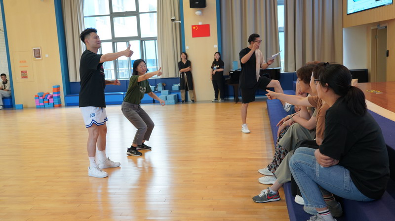 緊接著進行的是“你比我猜”項目。這個項目需要老師們分組進行,一組負責比劃動作,另一組則需要猜出是什么體育項目。這個項目既考驗了老師們的想象力,也鍛煉了他們的溝通能力。