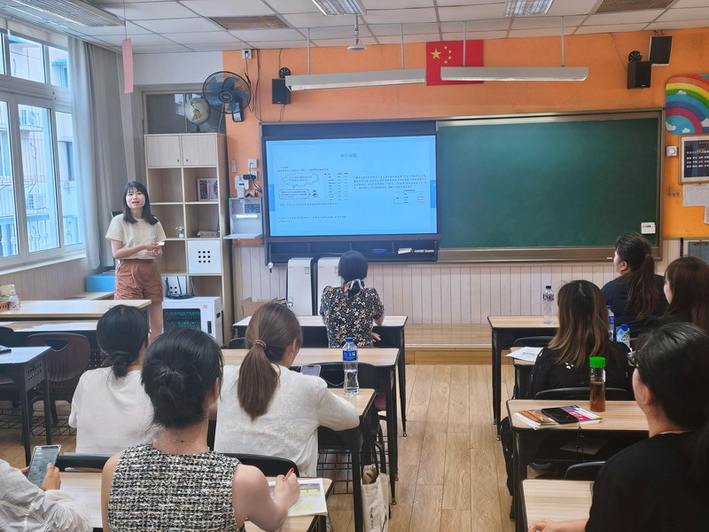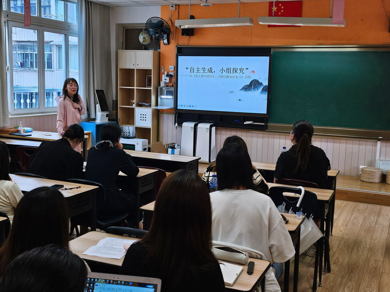 二年級備課組的黃老師的分享主題是《改變的不只是教學(xué)順序—“東南西北”教學(xué)思考》,介紹了課程設(shè)計中的情境創(chuàng)設(shè)、活動設(shè)計、落實新課標(biāo)數(shù)學(xué)來源于生活并應(yīng)用于生活的教學(xué)設(shè)計與反思;金老師以《化靜為動,讓課堂多一份情趣—“三角形與四邊形”課堂分享》為主題,分享了融靜態(tài)觀察入動態(tài)感知、將一次提煉結(jié)論轉(zhuǎn)變?yōu)橹鸩酵晟平?jīng)驗、促進(jìn)學(xué)生問題解決的多樣化發(fā)展。