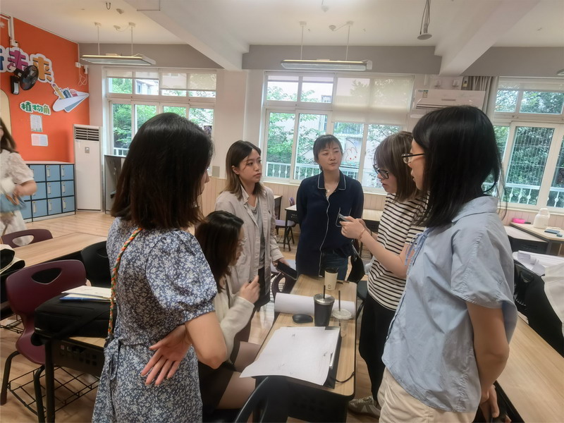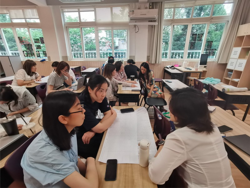 首先,大組長孔琦老師向全體英語教師就本次暑期培訓內容作通識宣講,并指導大家完成智學通app的升級工作。接下來便是此次培訓的重頭戲——基于國家課程標準的世外英語學科課程修訂。老師們研讀了更新版的基于主題探究的單元整體規劃流程,并對基于年段的目標進行了討論。隨后,大組長徐璐婧老師通過范例為大家講解了單元設計工具表。老師們明確了要在“意識先行,行為跟進”的理念下,以新課標意識引導教學行為,英語組開啟了逐年逐步全學段的修訂大工程。
