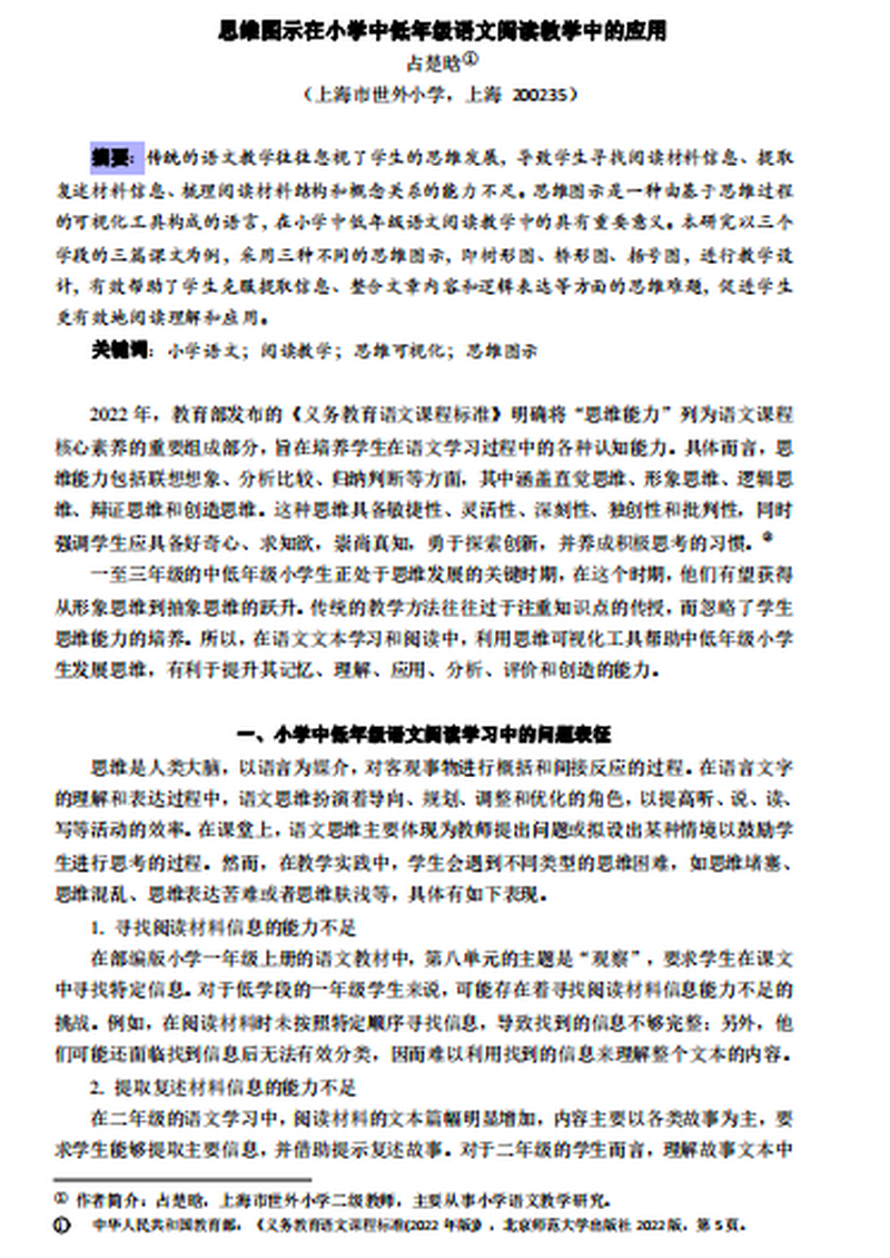 值得高興的是,在項(xiàng)目的錘煉下,青年教師們迅速成長起來了。占老師在核心期刊《現(xiàn)代基礎(chǔ)教育研究》上發(fā)表了《思維圖示在小學(xué)中低年級(jí)語文閱讀教學(xué)中的應(yīng)用》。