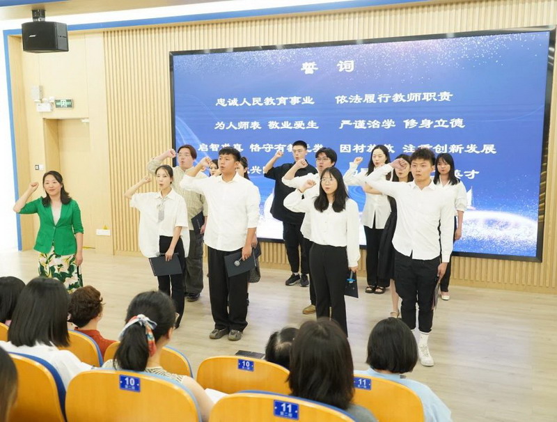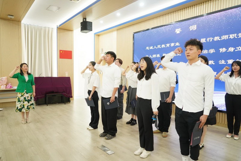 青年教師立誓言,青春熱血獻(xiàn)杏壇。青年教師代表在陸素英副校長的帶領(lǐng)下進(jìn)行了宣誓,表達(dá)了他們不忘初心、牢記使命,以愛育人心無悔,以德立身行路寬的決心。胸懷青春凌云志,戮力前行不畏難,青年教師們準(zhǔn)備在教育的道路上書寫新的篇章。