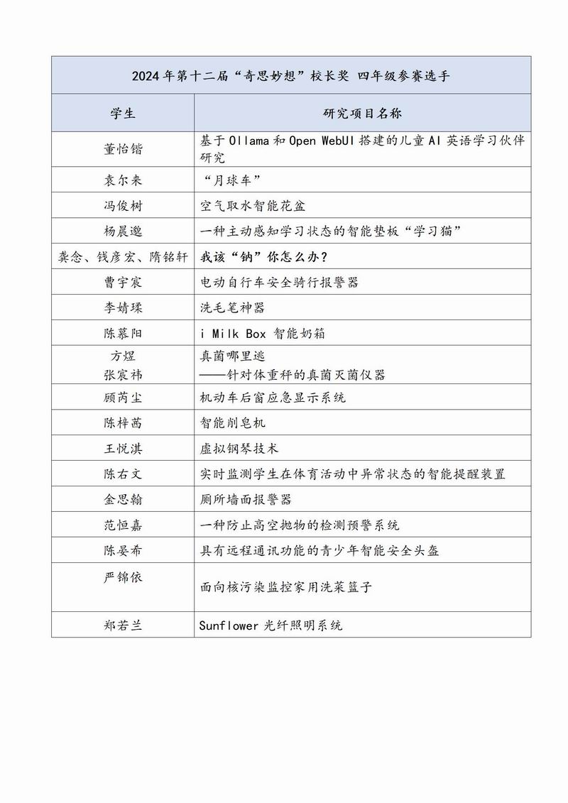 “奇思妙想”校長獎活動為學(xué)生們提供了一個展示自我、實現(xiàn)夢想的舞臺,更推動了校園文化的蓬勃發(fā)展。愿每一個來自同伴們的奇思妙想能激發(fā)更多學(xué)生的創(chuàng)新精神和社會責(zé)任感的新星,帶來更多令人驚嘆的成果,為未來帶去更多的驚喜。