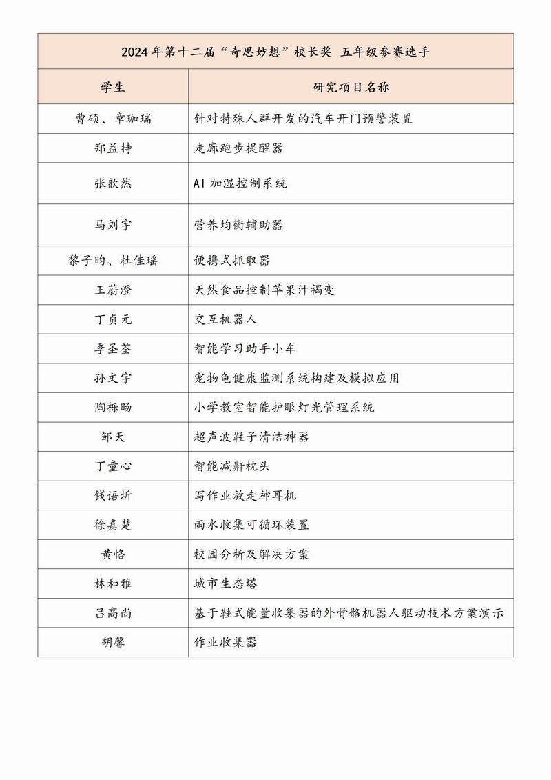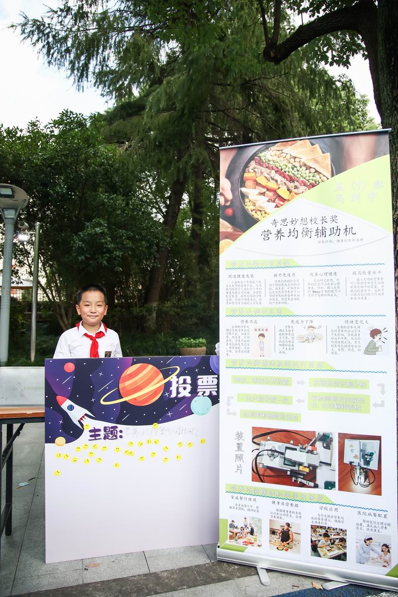 活動最終評選出本屆“奇思妙想”校長獎——特等獎、優(yōu)勝獎、參與獎,以及由三、四、五年級學(xué)生們投票選出的人氣獎。每一個獎項都是對學(xué)生們創(chuàng)新精神的肯定。