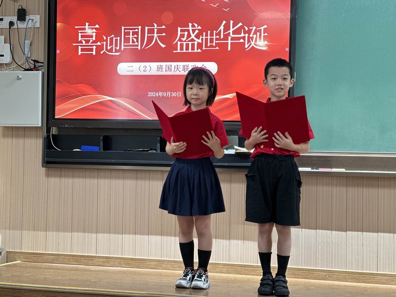 隨后,參加了徐匯區“國旗下成長”的王培羽、邢知以用稚嫩而真摯的聲音,為大家帶來了國慶朗誦。他們朗誦的是贊美祖國壯麗山河和悠久歷史的篇章,每一個字都飽含深情,讓在場的每一個人都為之動容。朗誦結束后,全場響起了經久不息的掌聲,這是對孩子們純真情感的最好回應。