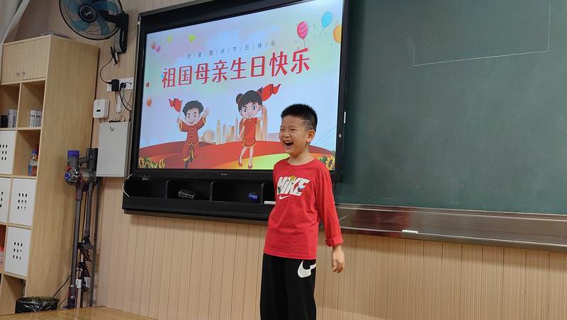 上午,隨著歡快的音樂響起,一場別開生面的聯歡會在班級教室里拉開了序幕。舞臺上,同學們紛紛登臺亮相,展示著各自精心準備的才藝。有的帶來了悠揚的葫蘆絲獨奏,旋律如泉水般清澈,讓人心曠神怡;有的則表演了活力四射的現代舞,每一個動作都充滿了青春的氣息;還有的同學用稚嫩卻堅定的聲音演唱了愛國歌曲,歌聲中飽含著對祖國的深情厚誼。教室里掌聲雷動,歡聲笑語不斷,每一個人都被這份濃濃的愛國氛圍深深感染。