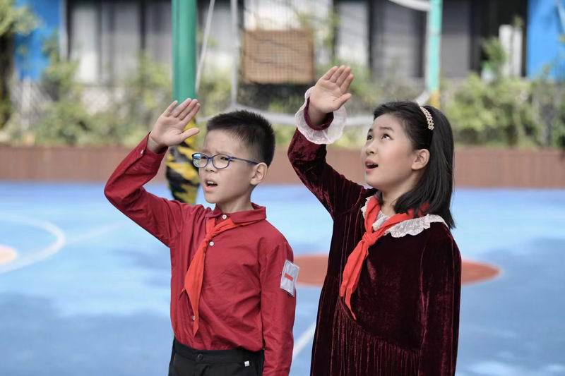 前進吧,少先隊員們!讓世界見證你們的風采。祝福您,偉大的祖國。