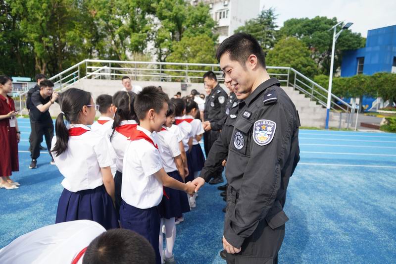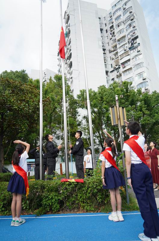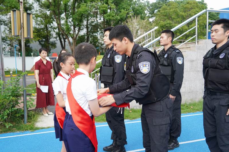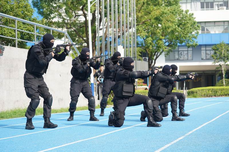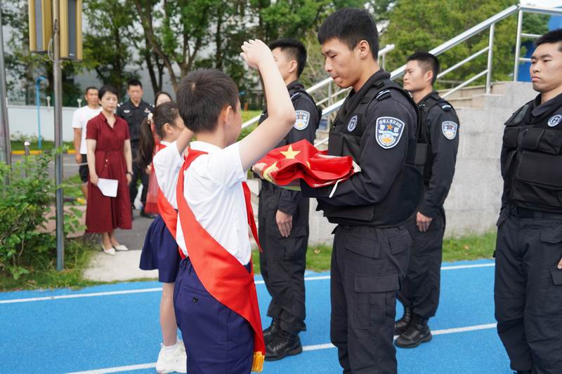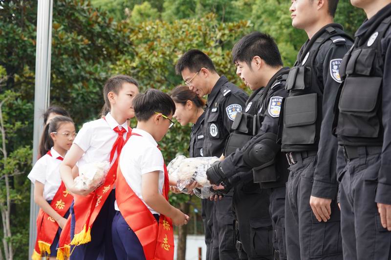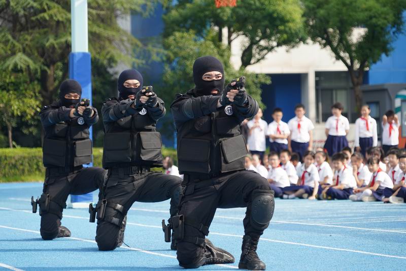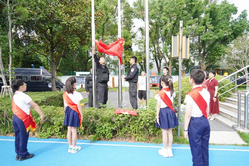 值得一提的是,這次升旗儀式邀請到了上海市公安局徐匯分局的特警支隊作為嘉賓。他們帶來了專業的警務展示,動作到位、剛勁有力,技能嫻熟、游刃有余,隊員間紀律嚴明、配合緊密、訓練有素,隨后,特警叔叔用平實而動人的話語,講述著日常的訓練和自己守護家園的小故事。現場的孩子們簇擁著,聽得認真,看得入迷,這也許是他們第一次與那些平日里只在電視屏幕和遙遠傳說中見過的特警叔叔們一場前所未有的親密接觸。掌聲一陣接一陣,特警的風采也激發了學生們對國家安全衛士的崇高敬意,孩子們眼中閃爍著對英雄的崇拜,種下了一顆顆關于勇氣、責任的小種子。校長致詞中說到:“這群最可愛的人以千錘百煉的意志、艱苦卓絕的訓練鑄就技藝精湛的技能,保家衛國的責任擔當、濃情厚意的家國情懷激發世外少年“少年強則國強”的遠大志向”。愿你們以堅定的步伐,踏著歷史的節拍,迎接這偉大的時刻。