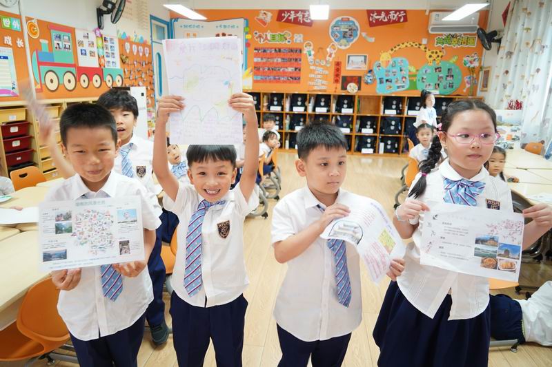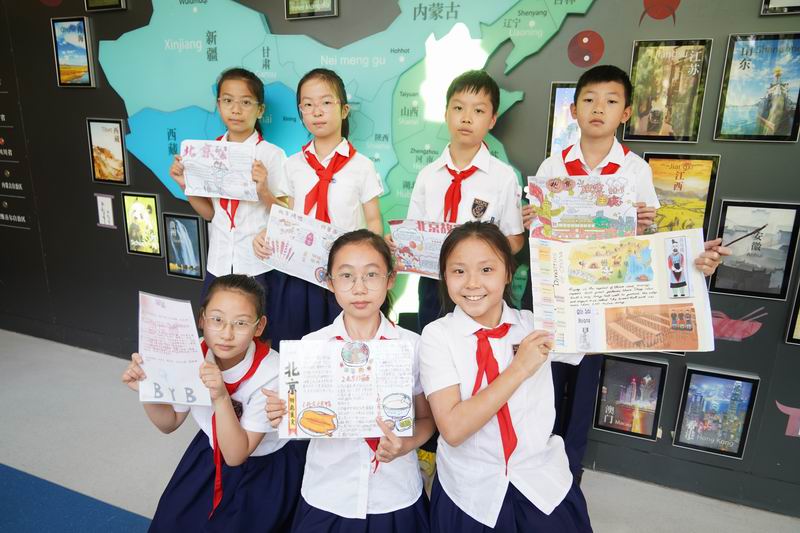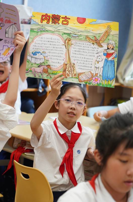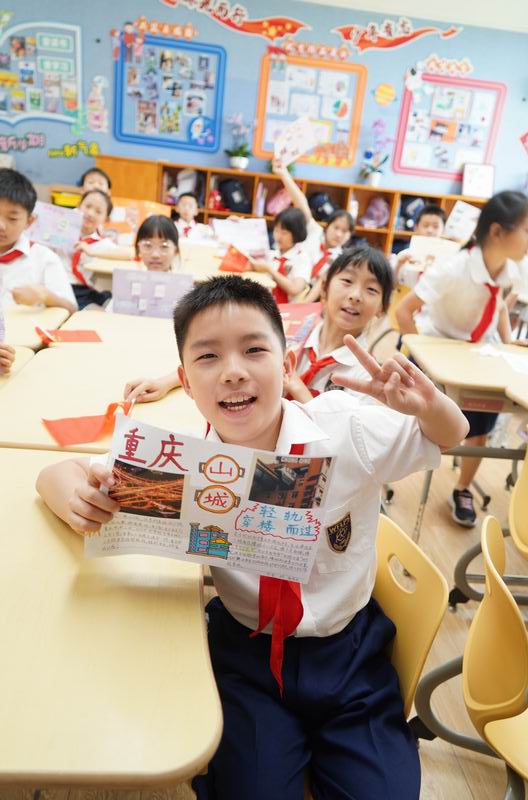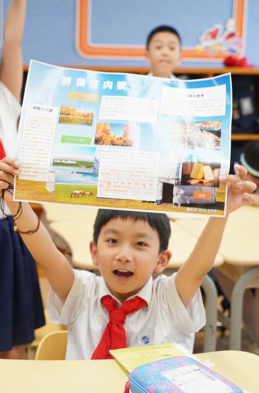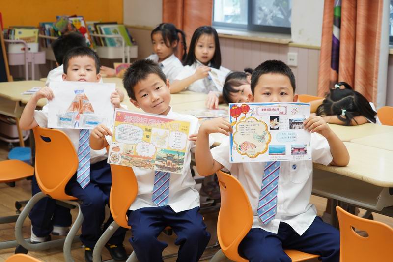 接下來的“走遍中國”系列活動,就像是一串串珍珠,串聯起了這個國慶的每一個精彩瞬間。活動通過開展“小調查”“小制作”,深入尋找、了解各省份地方的建設成就、歷史背景、中國的名勝古跡、發明創造等。低年級的小朋友們,用稚嫩的小手,一筆一劃地繪制著心中的中國地圖,那份認真與專注,讓人動容;中年級的孩子們,圍坐一起,故事會的形式分享著各自去過的地方,看到的人文歷史,那份敬仰與傳承,在交流中悄然傳遞;而高年級的學生,則通過現代技術,一場“虛擬旅行”活動詮釋著對祖國江山的崇敬。