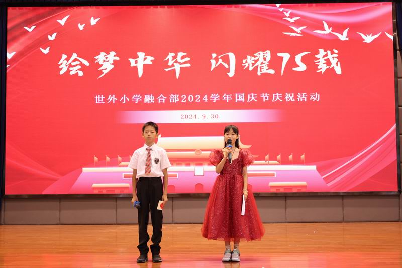 今年,新中國迎來了75周年華誕,世外小學國際部特別組織了一場主題為“繪夢中華,閃耀75載”的國慶節慶祝活動。通過多樣化的活動形式,全體師生共同回顧祖國的光輝歷程,激發愛國熱情,表達對祖國未來的美好祝愿。