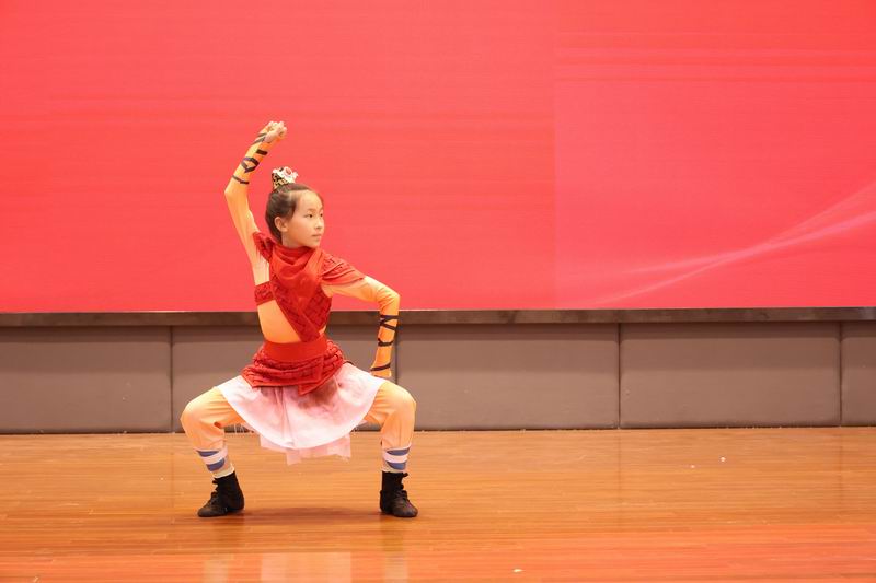 全校師生齊聚體育館觀看了一段新中國75年歷史回顧的視頻,通過影像重溫祖國的艱苦奮斗與卓越成就。接著,各年級學生代表依次展示才藝。節目豐富多彩,包括朗誦、滬劇、舞蹈、武術等。無論是低年級學生的稚嫩表演,還是高年級學生的自信展示,都彰顯了學生們對祖國深厚的感情。此外,大美祖國視頻與經典歌曲串燒也為此次活動增添了濃厚的愛國氛圍。