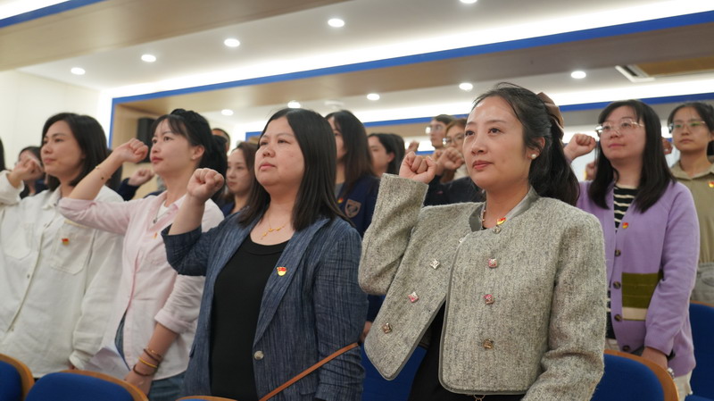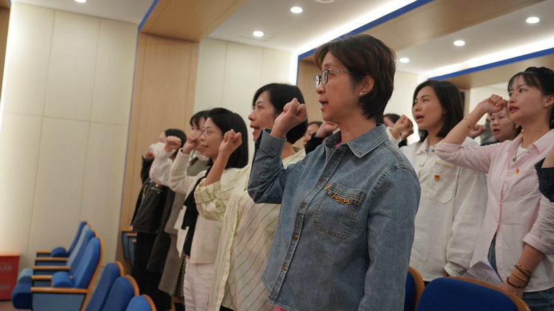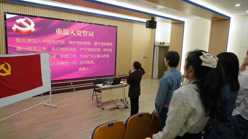 活動的高潮部分是黨員重溫入黨誓詞。在支委委員閔燕同志的領誓下,領誓人逐句頓讀誓詞,宣誓人齊聲跟誦誓詞。那莊嚴的誓詞在會議室里回蕩,每一位黨員教師的眼神中都充滿了堅定。領誓人誦完誓詞、誦畢 “宣誓人” 后,領誓人、宣誓人依次報出自己的姓名,這一刻,大家仿佛回到了入黨的那一刻,心中的使命感和責任感愈發強烈。