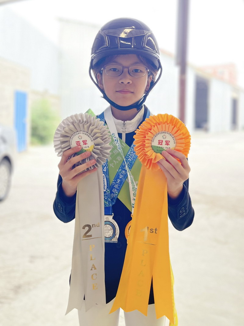 10月20日,2024上海市學生運動會馬術盛裝舞步(中小學組)比賽圓滿落下帷幕。在這場技術與勇氣的角逐中,世外小學小騎手吳可欣,作為徐匯區代表隊的一員,表現出色,以個人總分最高勇奪小學組團體(4~5年級)金牌,小學組個人賽(4~5年級)銀牌!