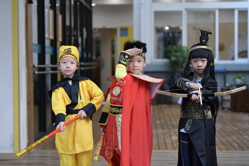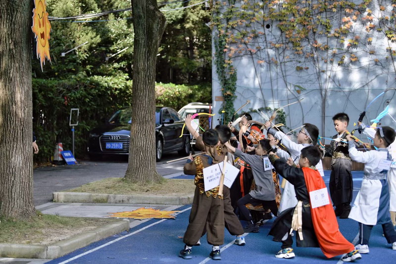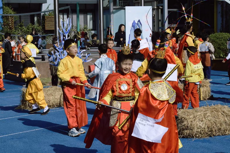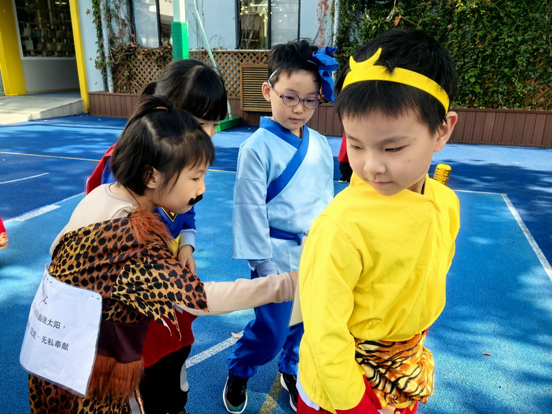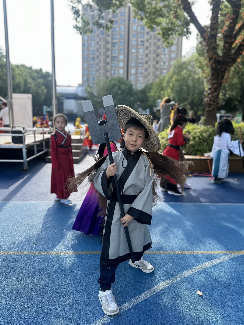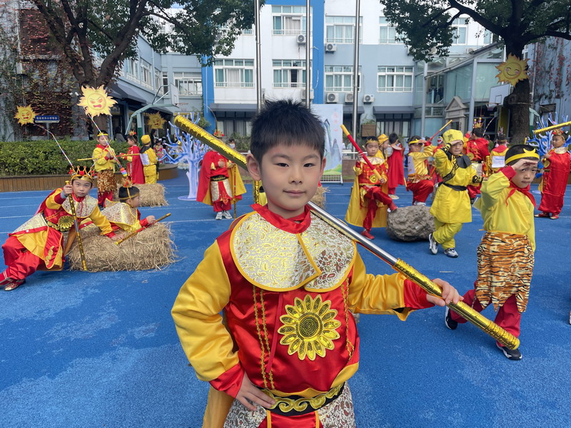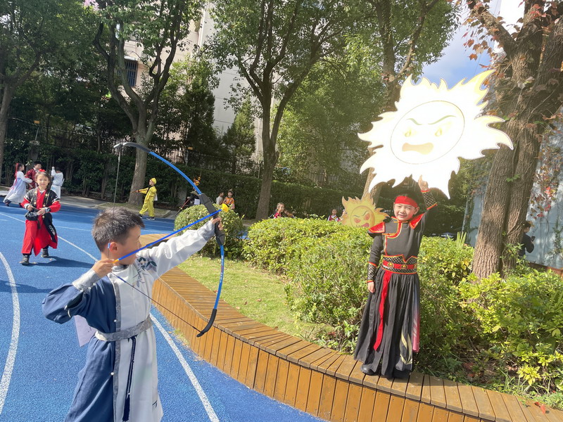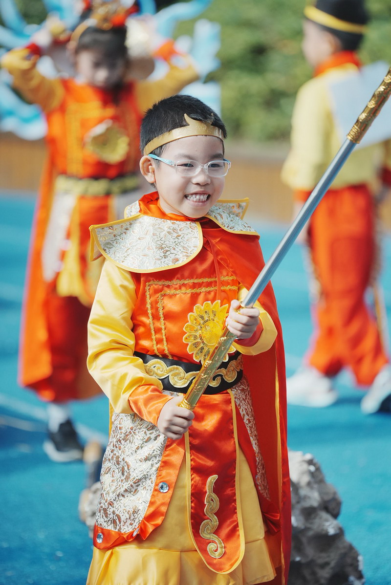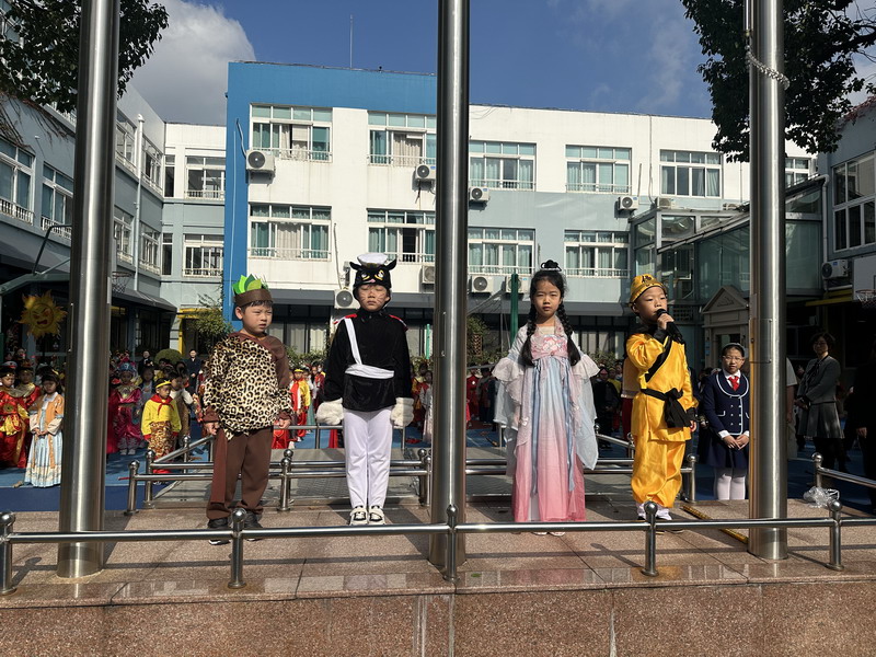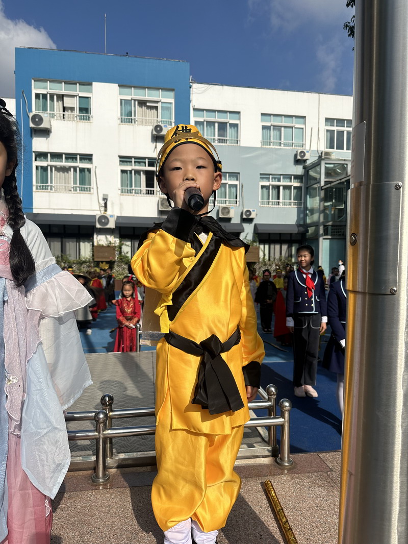 11月11日,是個艷陽高照的日子,第七屆世外小學英雄節活動在一年級學生稚嫩的英雄人物介紹中拉開帷幕。一年級四位學生榮幸地成為升旗手,在清風微拂中,向師生們介紹了神話中的英雄人物。