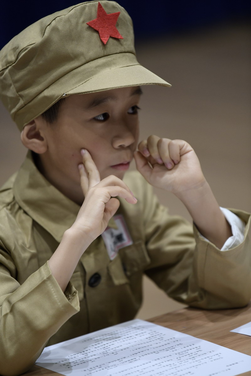活動現場,孩子們用最激昂的語言、最深沉的情感繪聲繪色地講述著英雄們背后的故事。除了耳熟能詳的用胸膛堵住敵人槍眼的黃繼光;任憑烈火灼身依然紋絲不動的邱少云;在冰天雪地與敵人周旋斗爭的楊靖宇;把敵人帶進八路軍埋伏圈的放牛娃王二小……還涌現出了不為人熟知的英雄們,他(她)們中有跳進冰窟窿,勇救朝鮮落水兒童的羅盛教、為部隊開辟前進的道路,壯烈犧牲的“滾雷英雄”羅光燮;穿越封鎖線,攀爬絕壁,幫助紅軍取得臘子口戰役勝利的“苗族英雄”云貴川;為掩護群眾不幸被捕,最終英勇就義的“抗日小英雄”張晶麟……一場場動人心魄的戰斗,一個個感人至深的故事,讓聆聽的老師和伙伴們心潮澎湃,為之動容。