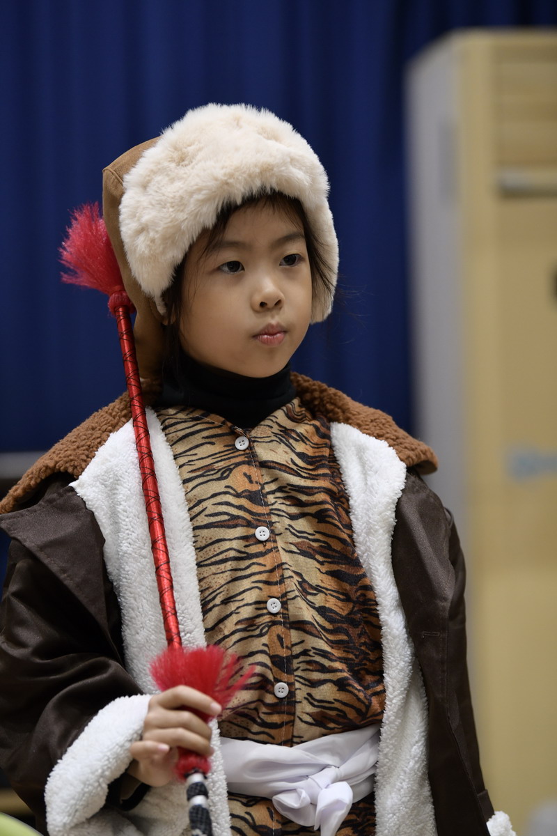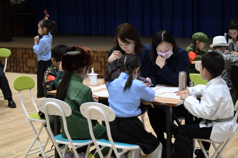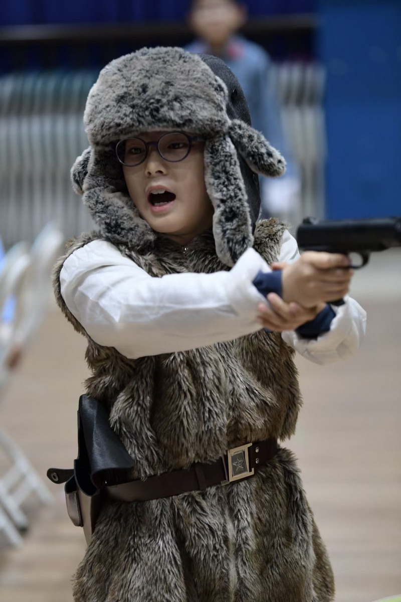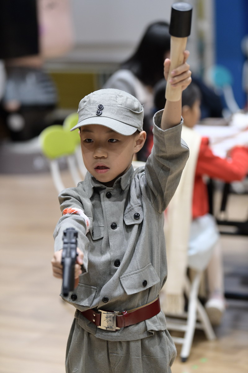 英雄會舉行前,孩子們在老師的指導下,利用課余時間閱讀紅色經典故事、觀看戰爭紀錄片,確定好自己最敬佩的英雄人物,緊接著撰寫英雄事跡,反復修改之后才進入到設計動作環節。爸爸媽媽們為此全力配合,傾情付出,替孩子準備服飾、道具,為演繹英雄做好最充分的準備。