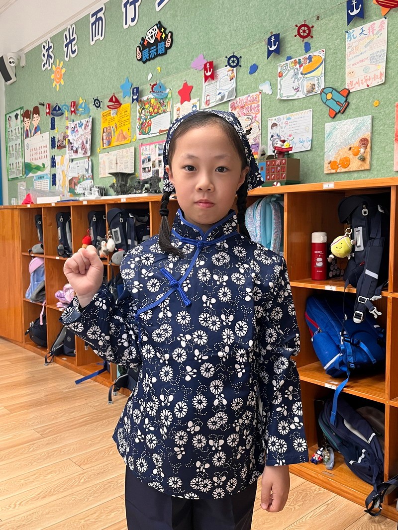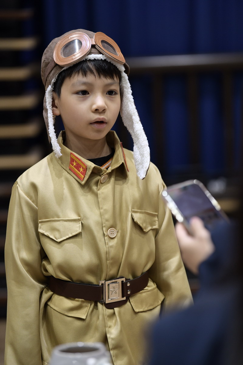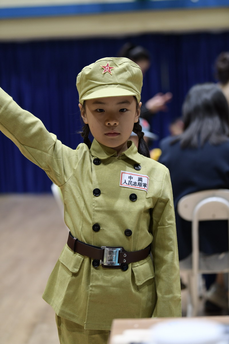 瞧,這里是高舉著炸藥包,視死如歸的董存瑞;那里是揣著雞毛信,機智勇敢的海娃;這邊是嚴守黨的秘密,寧死不屈的劉胡蘭,那邊是滿身鞭痕,戴著手鐐的“不做大小姐,要做革命人”的向警予……臉龐雖顯稚嫩,眼神卻很堅毅,孩子們用自己精彩的演說再現了戰火硝煙中無數英雄的光輝形象,以最特別的方式向他(她)們致敬。