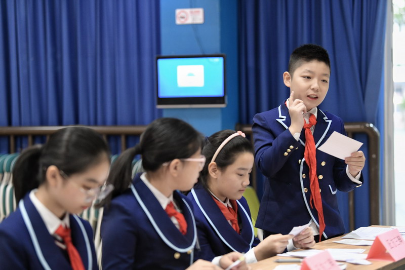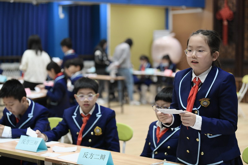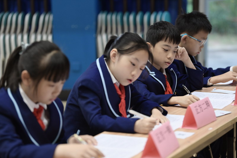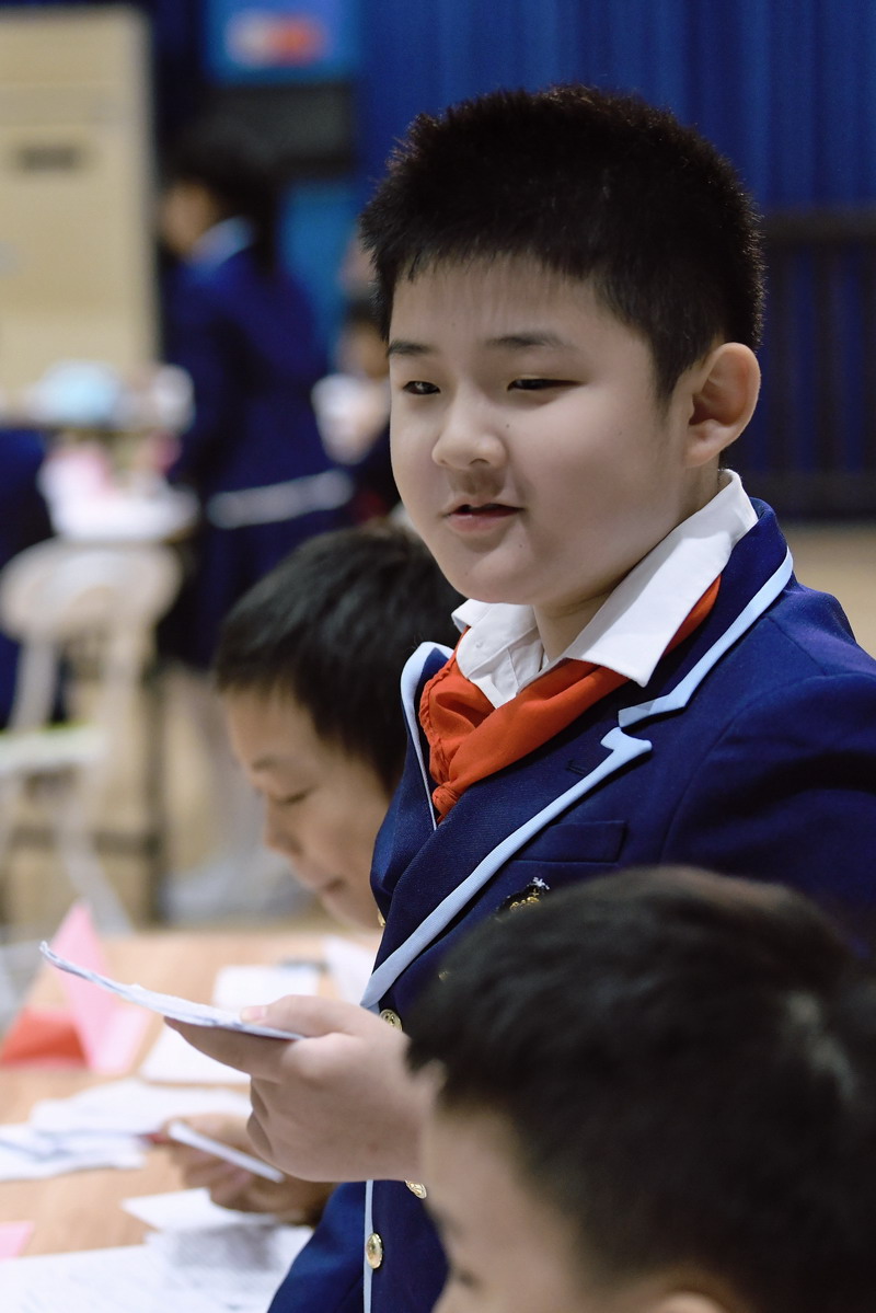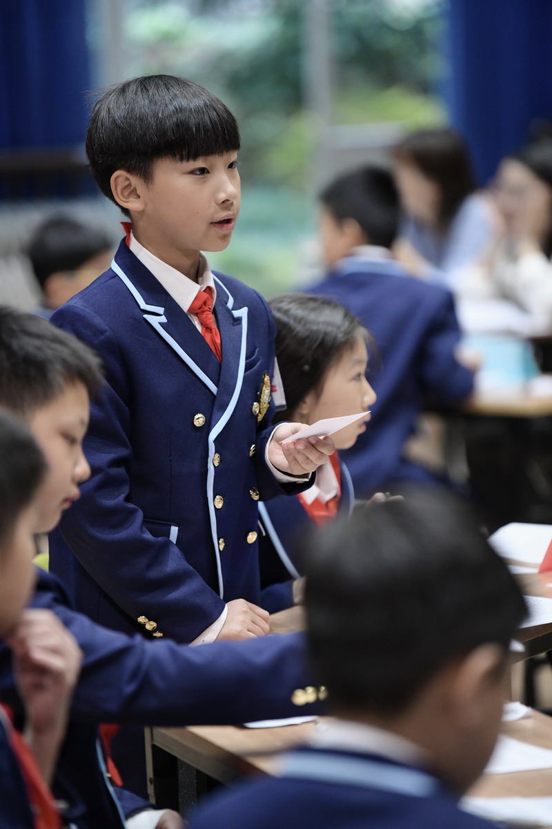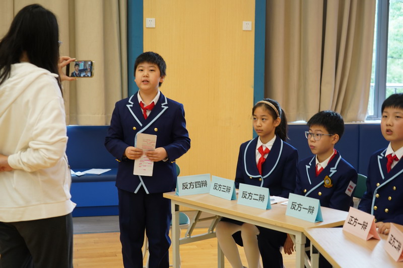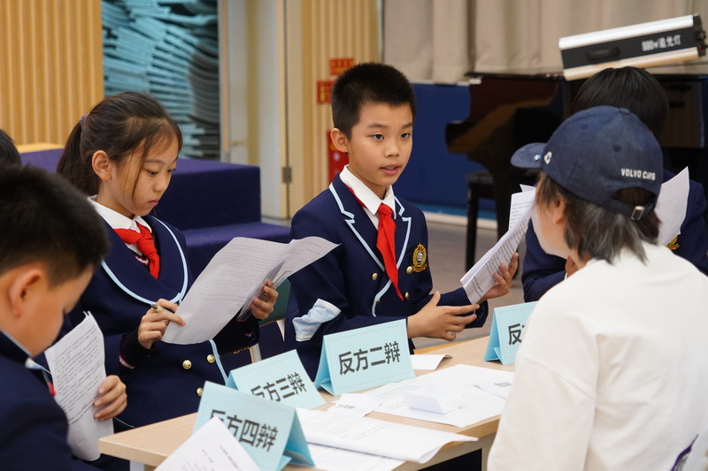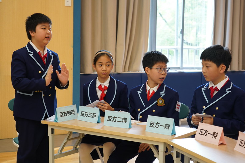 世外五年級學生通過精心的準備,用一場精彩的辯論會,思考、討論“在平凡的崗位上兢兢業(yè)業(yè)工作的人是不是英雄”這個主題。