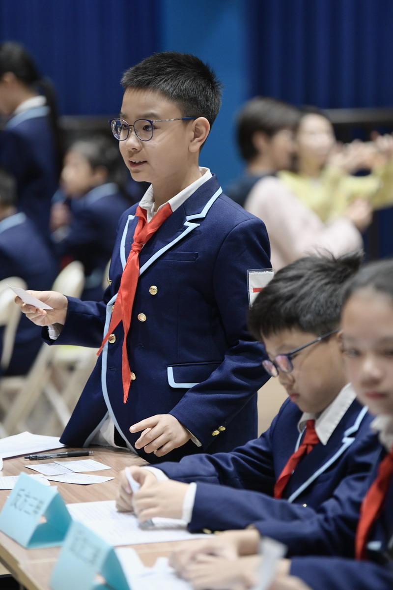 五年級的同學“慷慨陳詞抒己見,唇槍舌戰(zhàn)論英雄”,他們把主題聚焦于平凡的工作崗位的英雄,以辯論的方式來闡述觀點,進一步去思考英雄的本質與內涵。