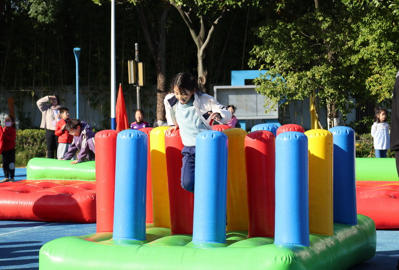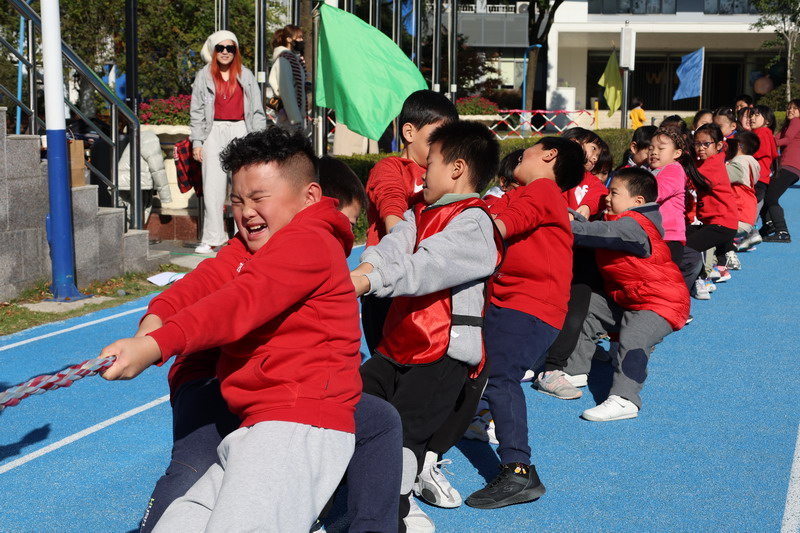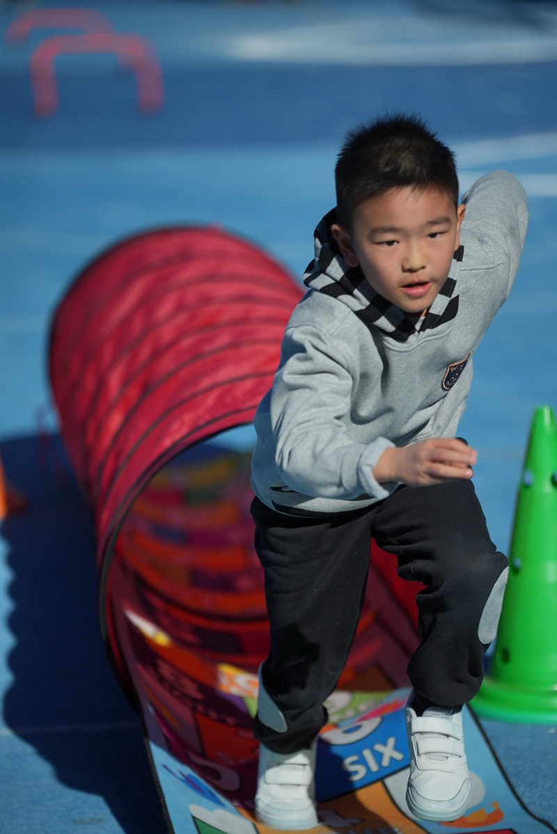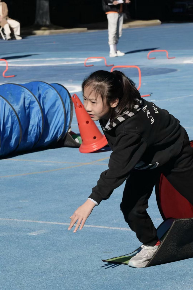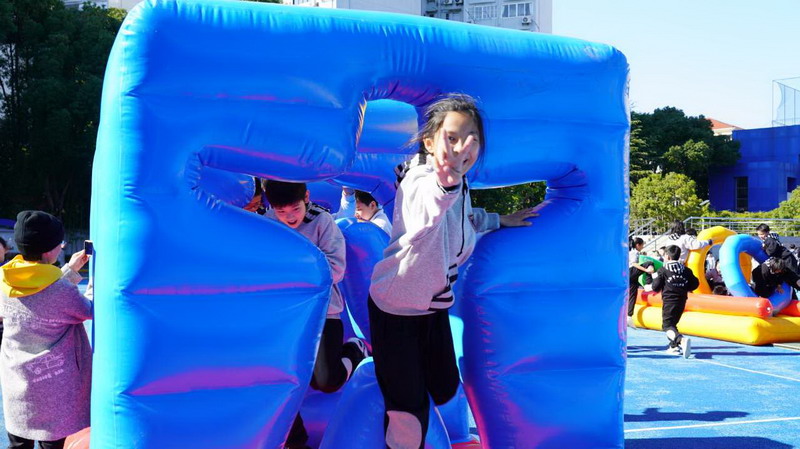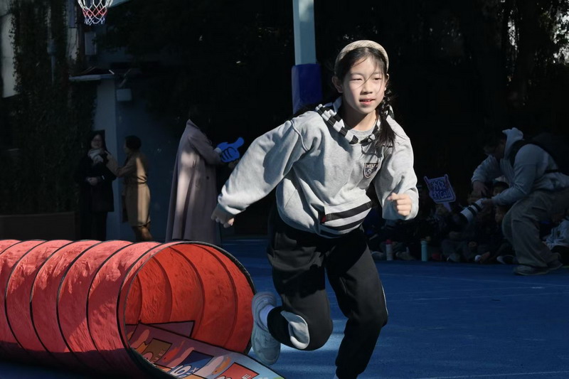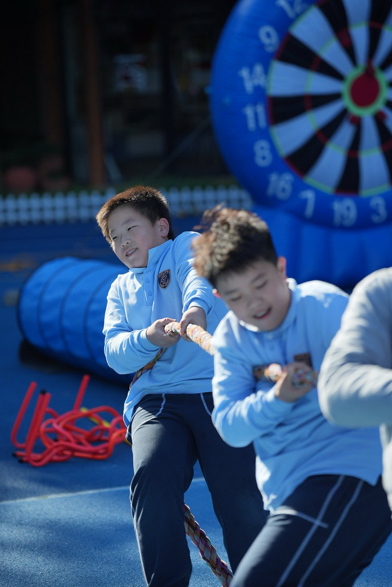 雙語部的運動會同樣精彩,障礙賽、長繩、短繩、拔河等項目有序開展。障礙賽中,賽道設(shè)計巧妙。參賽選手們?nèi)褙炞?,他們靈活地應(yīng)對著每一個障礙。