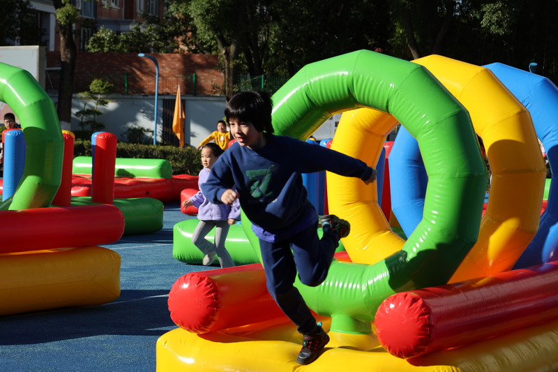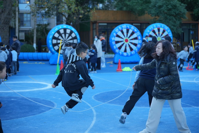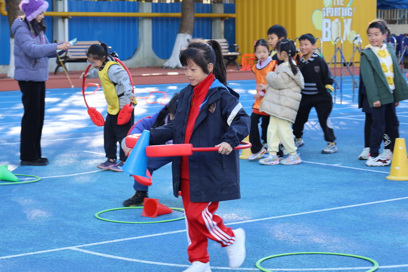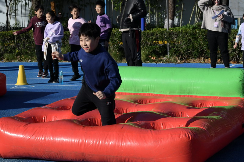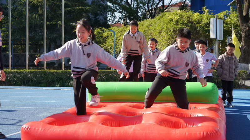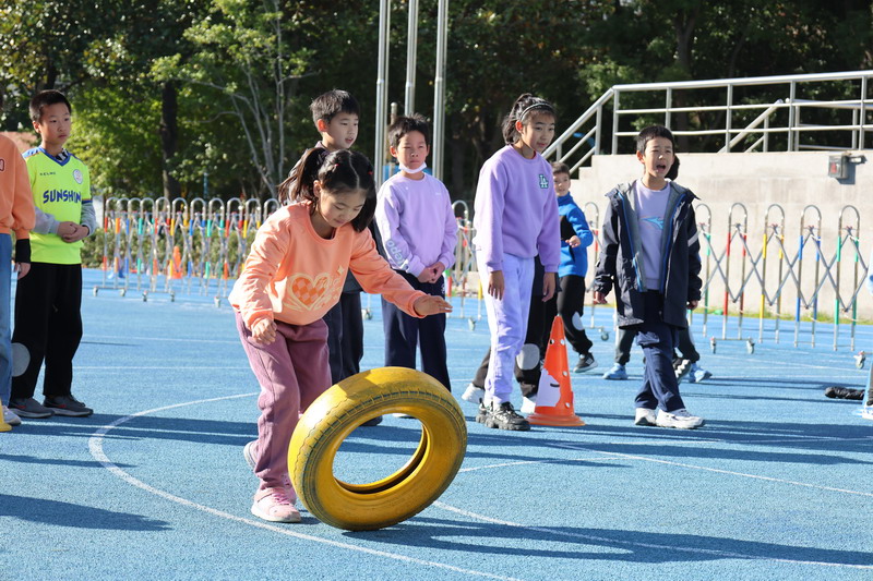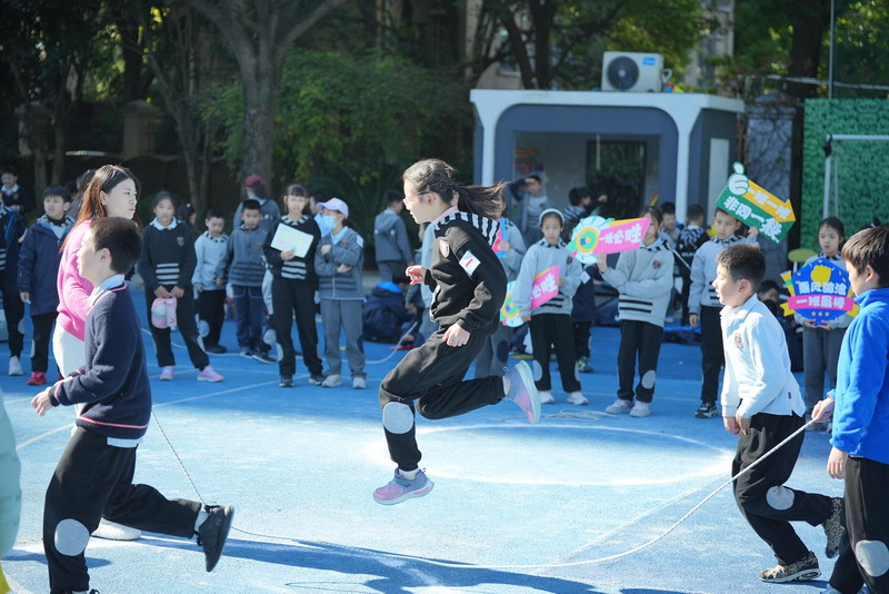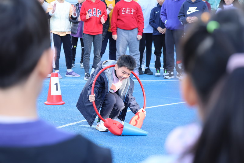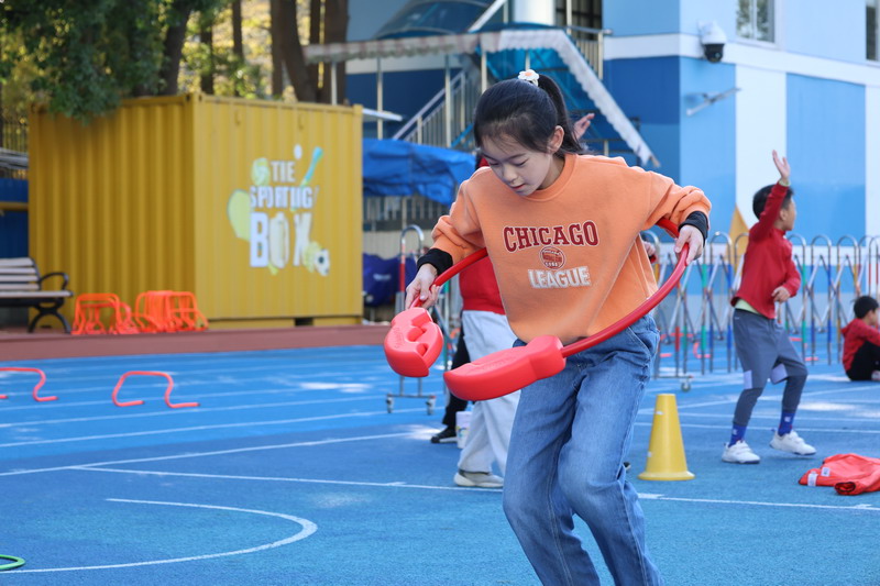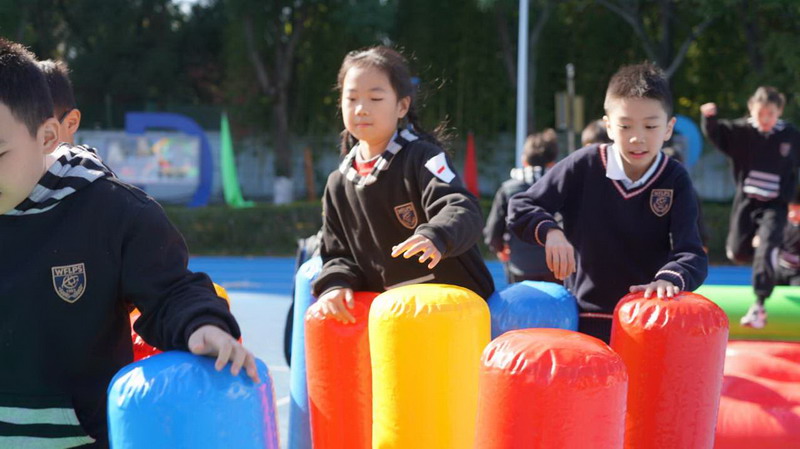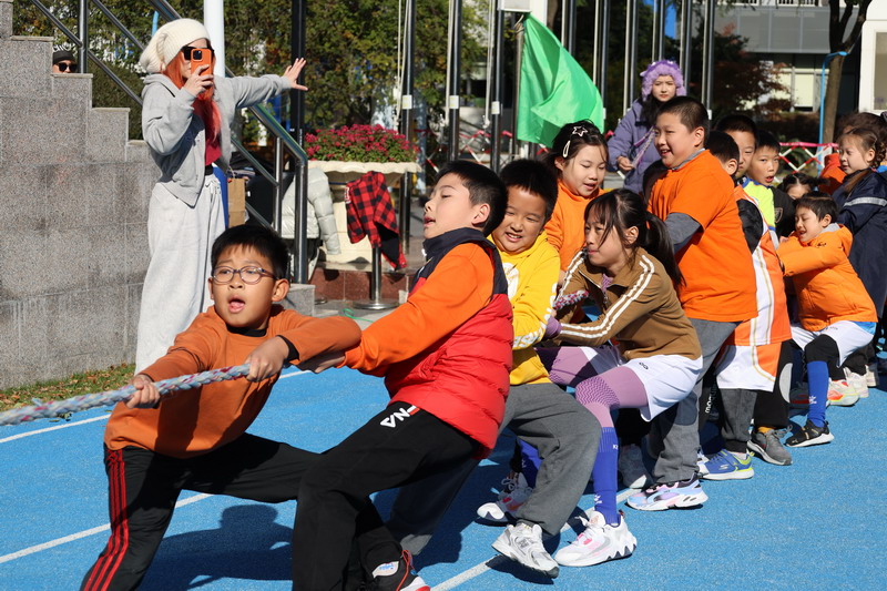 雙語部的運動會同樣精彩,障礙賽、長繩、短繩、拔河等項目有序開展。障礙賽中,賽道設(shè)計巧妙。參賽選手們?nèi)褙炞?,他們靈活地應(yīng)對著每一個障礙。