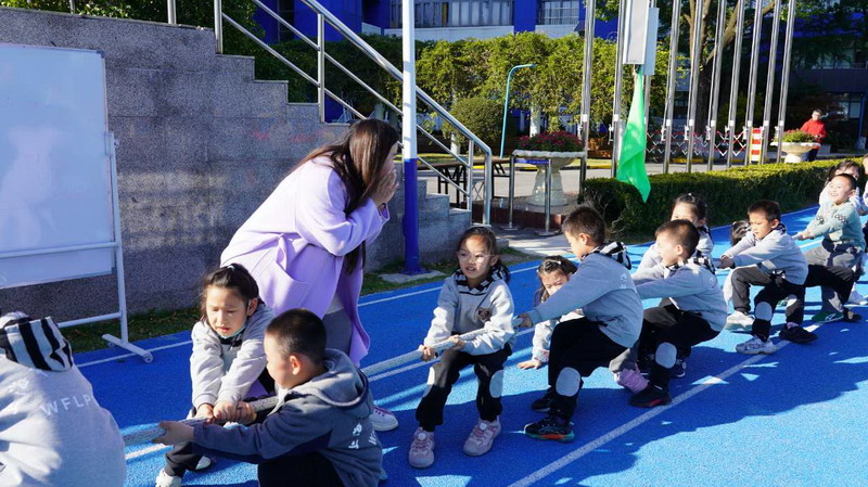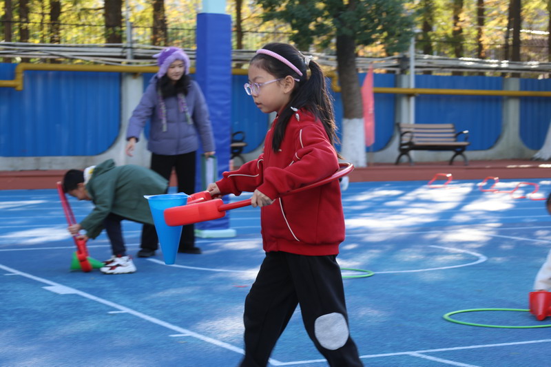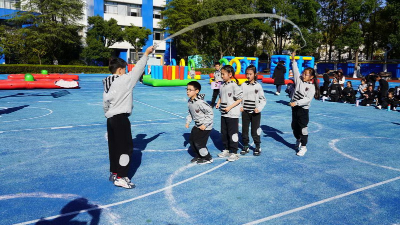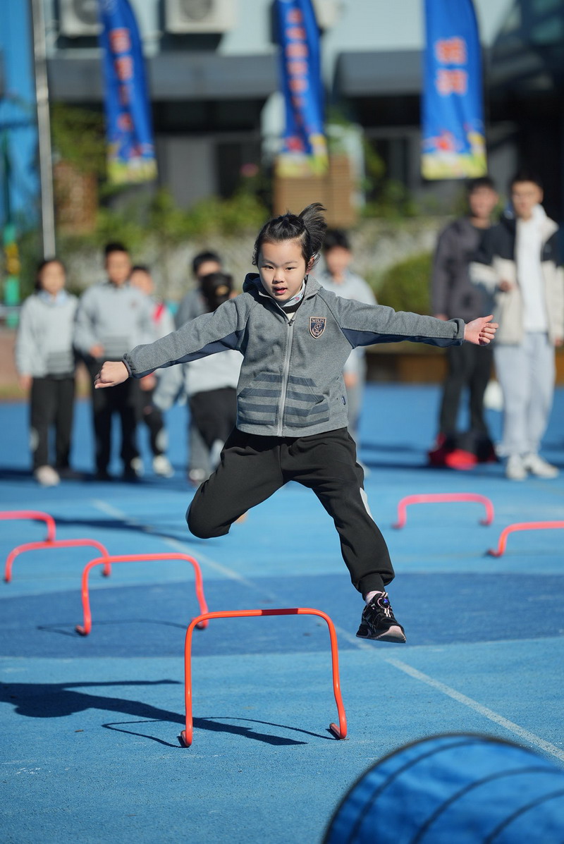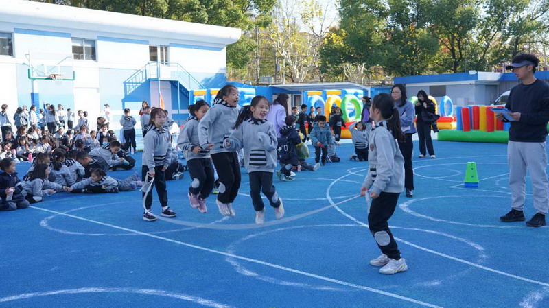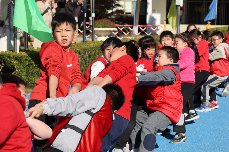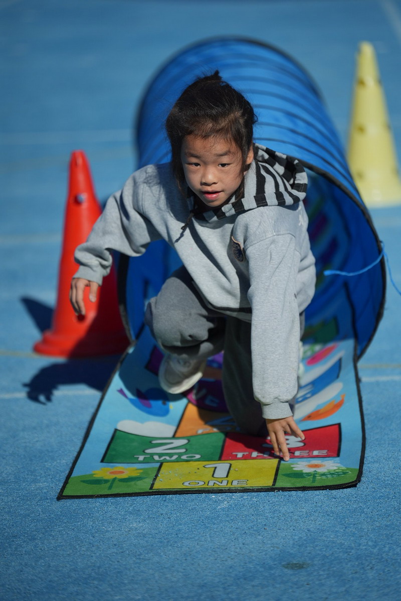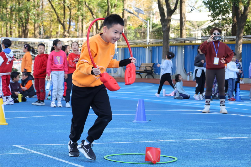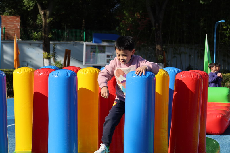 雙語部的運動會同樣精彩,障礙賽、長繩、短繩、拔河等項目有序開展。障礙賽中,賽道設(shè)計巧妙。參賽選手們?nèi)褙炞?,他們靈活地應(yīng)對著每一個障礙。