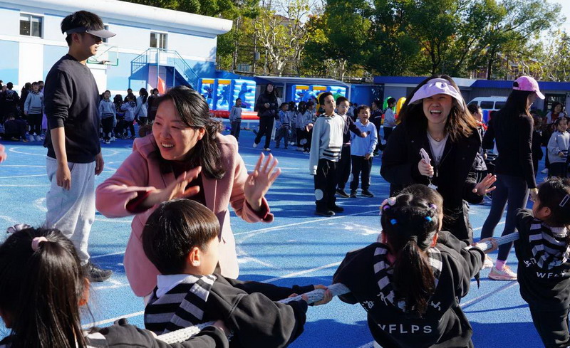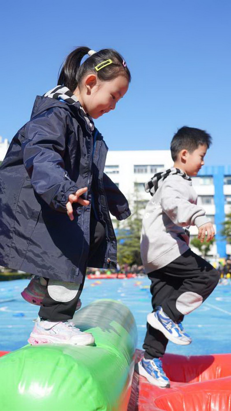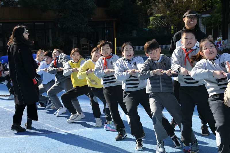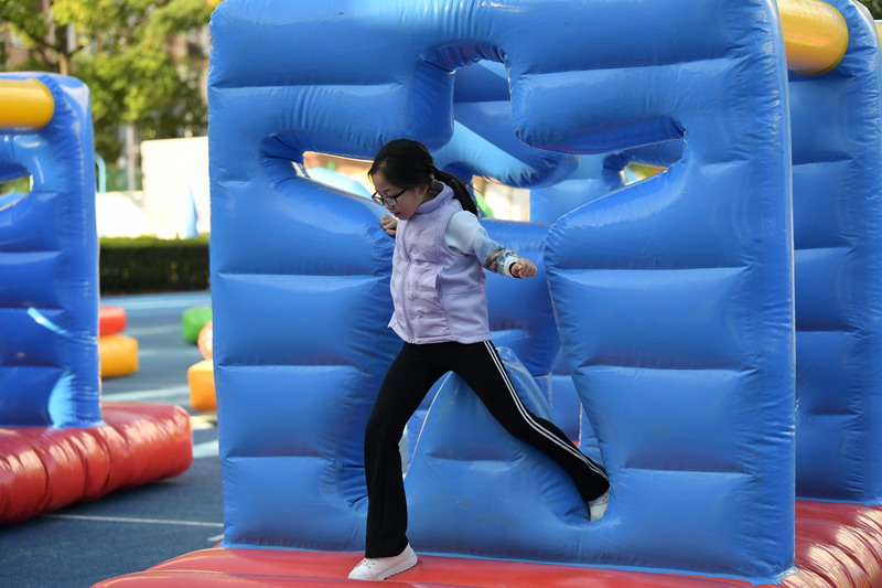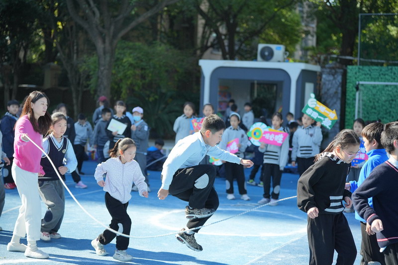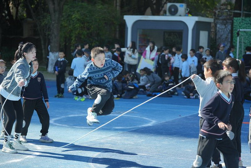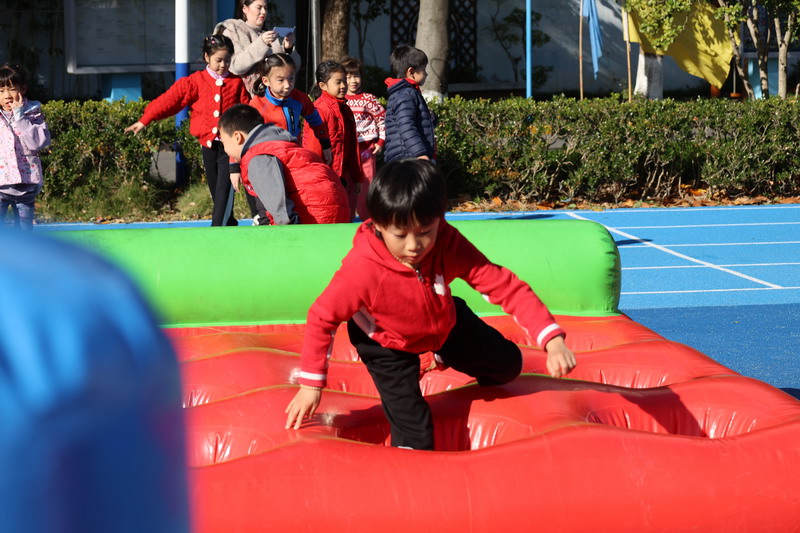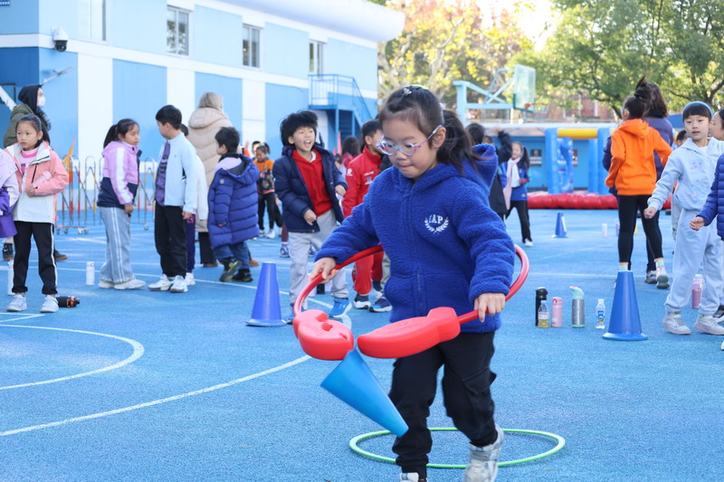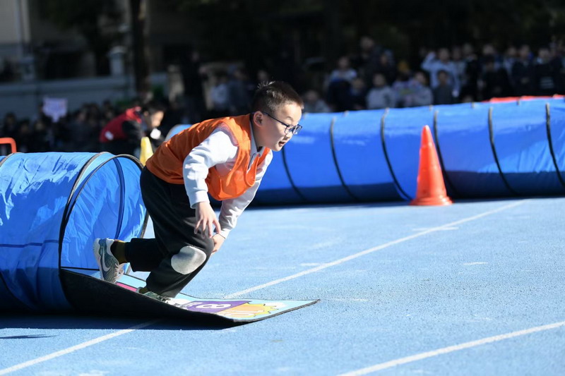 雙語部的運動會同樣精彩,障礙賽、長繩、短繩、拔河等項目有序開展。障礙賽中,賽道設(shè)計巧妙。參賽選手們?nèi)褙炞?,他們靈活地應(yīng)對著每一個障礙。
