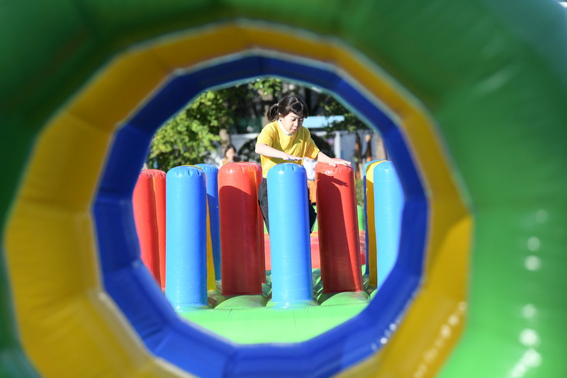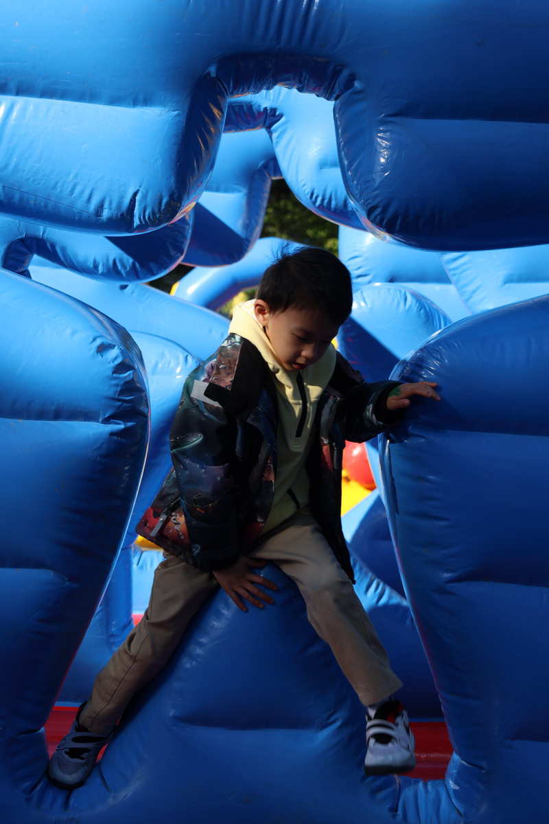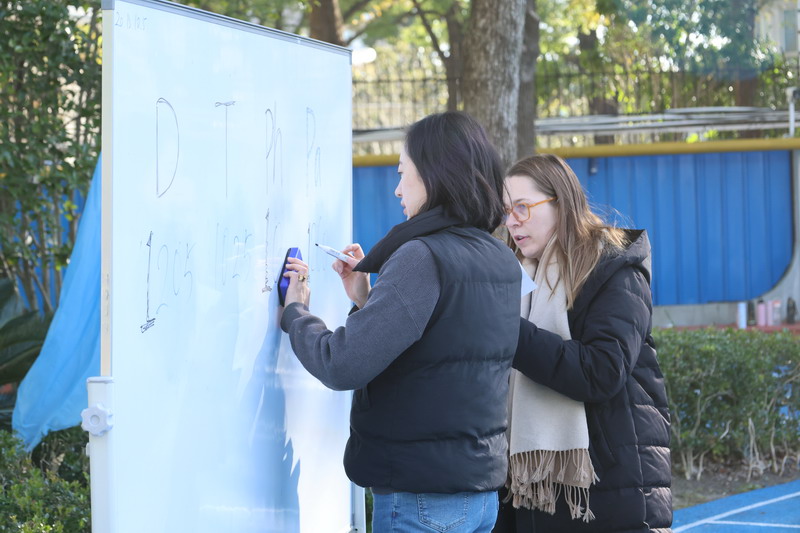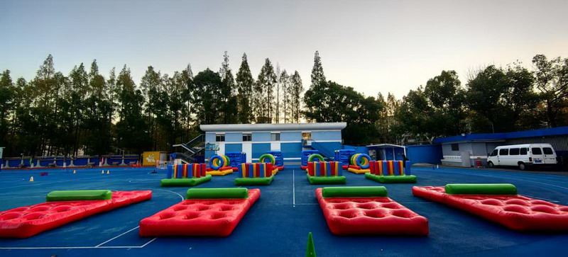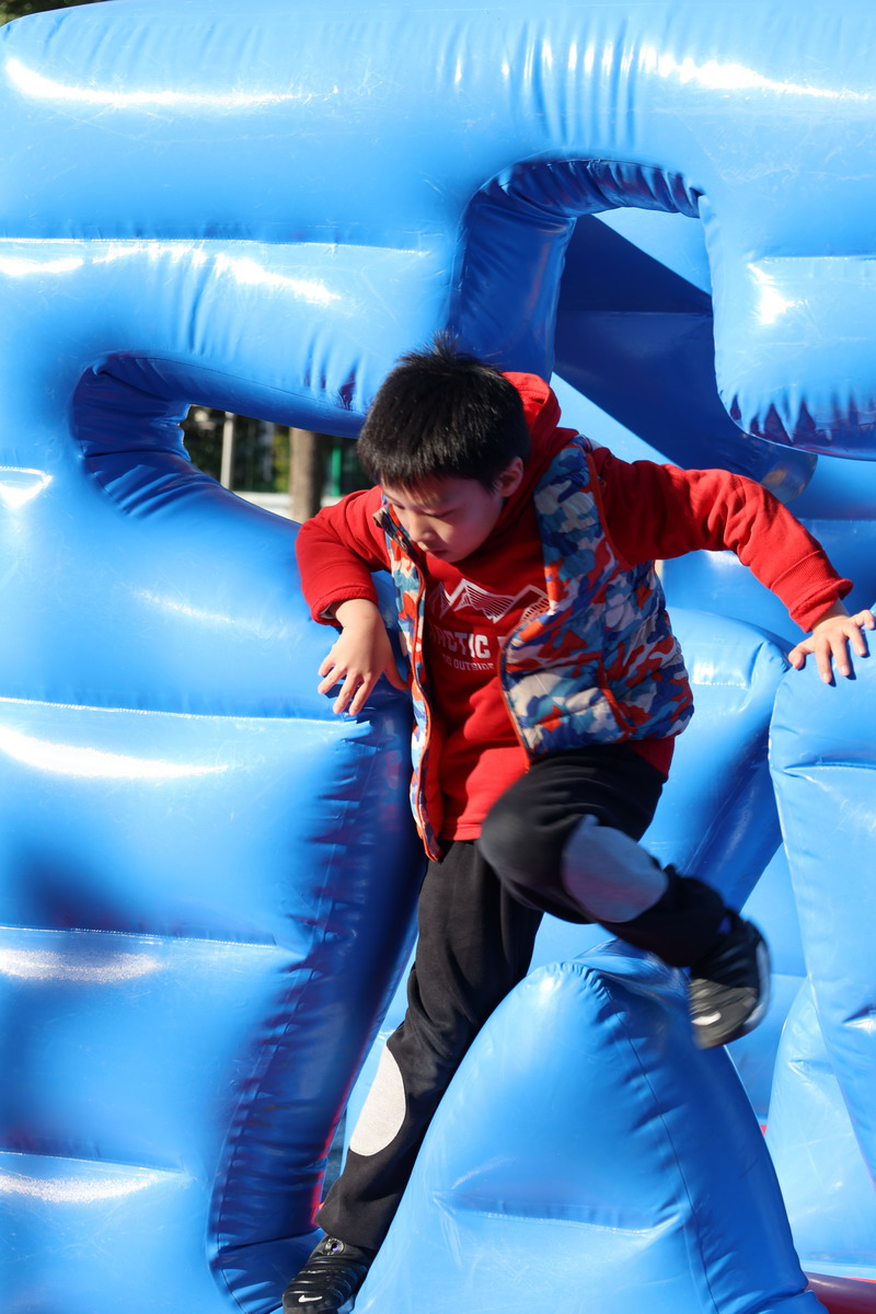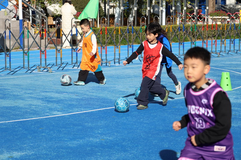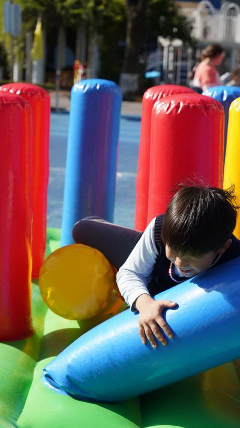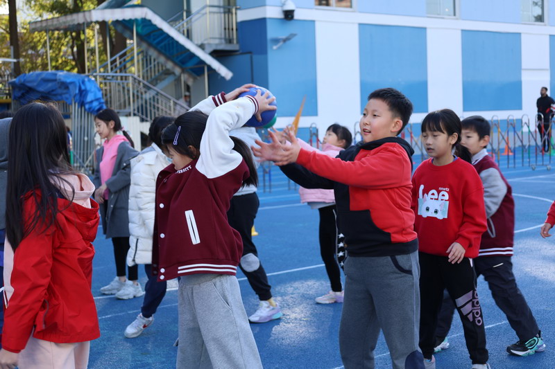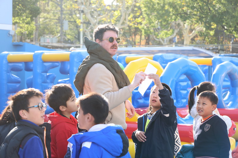 國際部學(xué)生們?nèi)巳藚⑴c 11 項充滿趣味的游戲活動。這些游戲項目各具特色,有考驗團(tuán)隊協(xié)作的“上上下下傳球”、有結(jié)合國際部足球、籃球課程的“運球接力”、有挑戰(zhàn)力量和速度的“翻滾的輪胎”,還有四個色彩鮮艷的“龐然大物”,那是障礙接力跑。