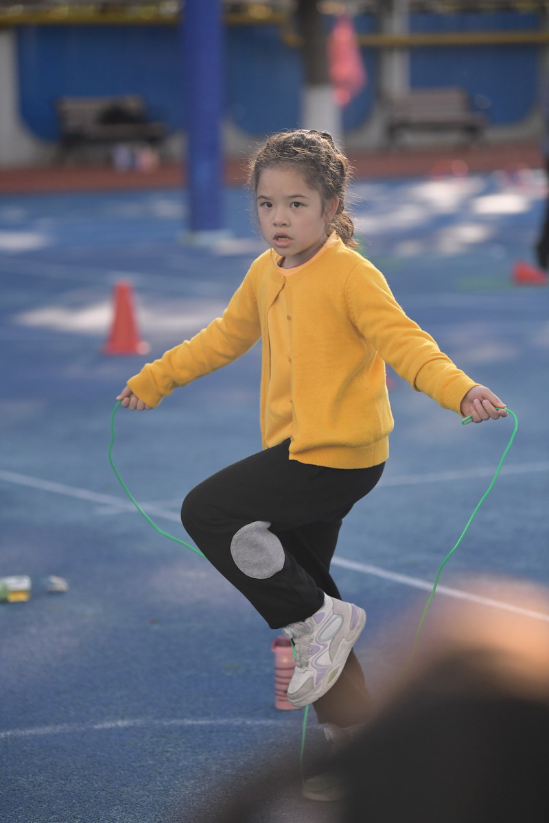 短繩比賽則是個人技巧的大比拼。選手們雙腳快速跳動,手中的短繩化作虛影。他們有的采用單腳交替跳,有的進(jìn)行雙搖跳,各種花樣跳繩令人目不暇接。每一位同學(xué)都全力以赴,為了班級的榮譽(yù)而戰(zhàn)。