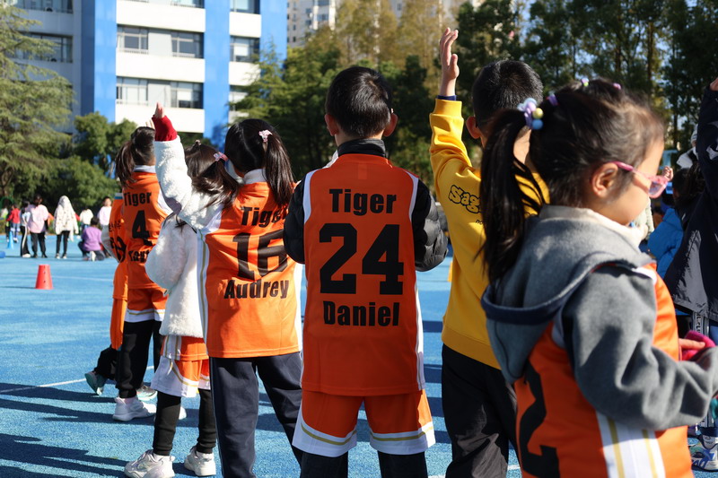 國際部的運動會按照HOUSETEAM分成龍、虎、熊貓和鳳凰四個隊伍,每個隊伍都由一到五年級學(xué)生組成,他們身著代表自己顏色的隊服。他們不僅為班級榮譽(yù)而戰(zhàn),更為HOUSETEAM而賽。