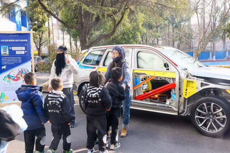 這臺獨特的汽車仿佛擁有神奇的魔力,引得同學們紛紛駐足圍觀,好奇心被徹底點燃。原來,這正是沃爾沃汽車小紅馬安全教育公益行動的特別策劃,旨在通過生動有趣的互動方式,向孩子們傳遞交通安全知識。