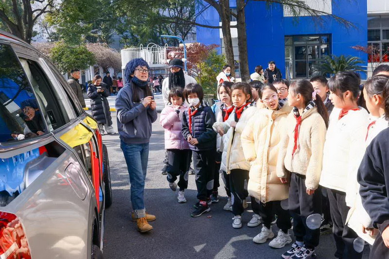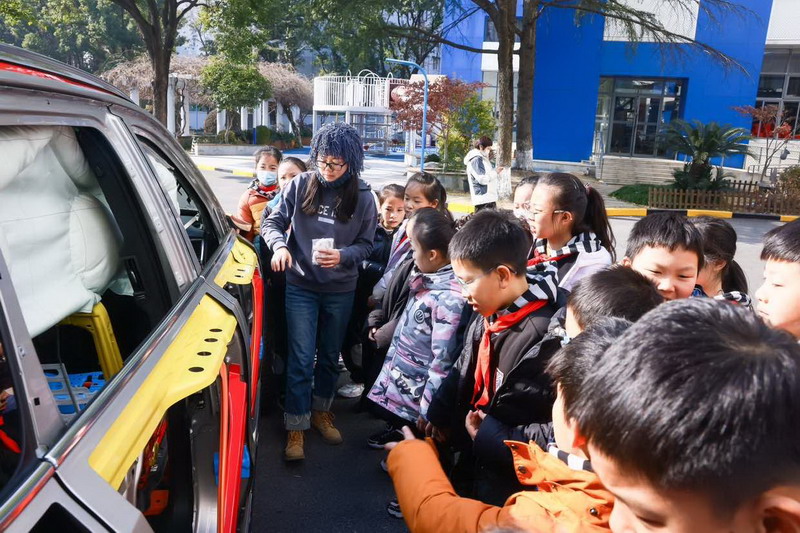 此外,老師們還帶領孩子們深入探索了汽車的被動安全與主動安全知識,仿佛是在拆解一輛汽車的“安全密碼”。從籠式車身結構、三點式安全帶、安全氣囊到兒童座椅,這些被動安全防護措施被生動地呈現在孩子們眼前。同時,車內的攝像頭、激光雷達以及人工智能超級計算機平臺等主動安全技術,也在老師們的生動比喻下變得栩栩如生,成為了孩子們心目中的“靈敏的眼睛”“敏銳的耳朵”和“聰慧的指揮官”。