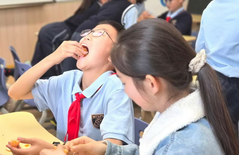 學生先通過“橘子體驗”用五感細致觀察、觸摸、品嘗,記錄下瞬間的美好;隨后化身“美好行動家”,小組討論如何為他人創造感官幸福——如為同學制作芳香書簽、設計舒緩音樂清單等。課程將抽象的生命價值感轉化為具體行動,讓學生在實踐中體會“予人玫瑰,手有余香”的深意。