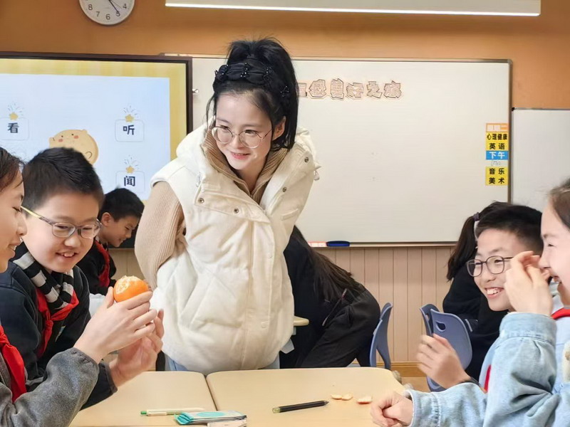 “原來一顆橘子也能讓人感受到世界的溫柔!”在這節以積極心理學為理論支撐的課堂上,學生通過“五感法”重新認識了生活中被忽略的美好。課程以盲盒道具、橘子體驗等趣味活動為載體,引導學生打開視覺、聽覺、嗅覺、味覺、觸覺,感知生命的細膩與豐盈。