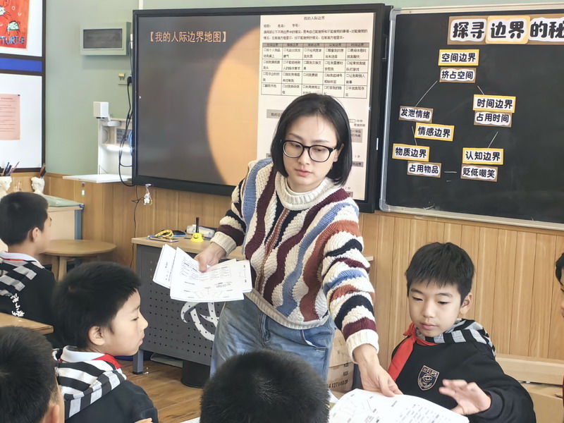 “班級物品上的神秘劃痕究竟是誰留下的?”在這節別開生面的心理課上,學生們化身“小偵探”,通過一場沉浸式“心理劇本殺”,抽絲剝繭揭開謎題背后的秘密。課程以情景教學法為核心,引導學生從班級怪事中覺察“人際邊界”的存在,理解邊界在空間、情感、物質、認知和時間等維度的個體差異。