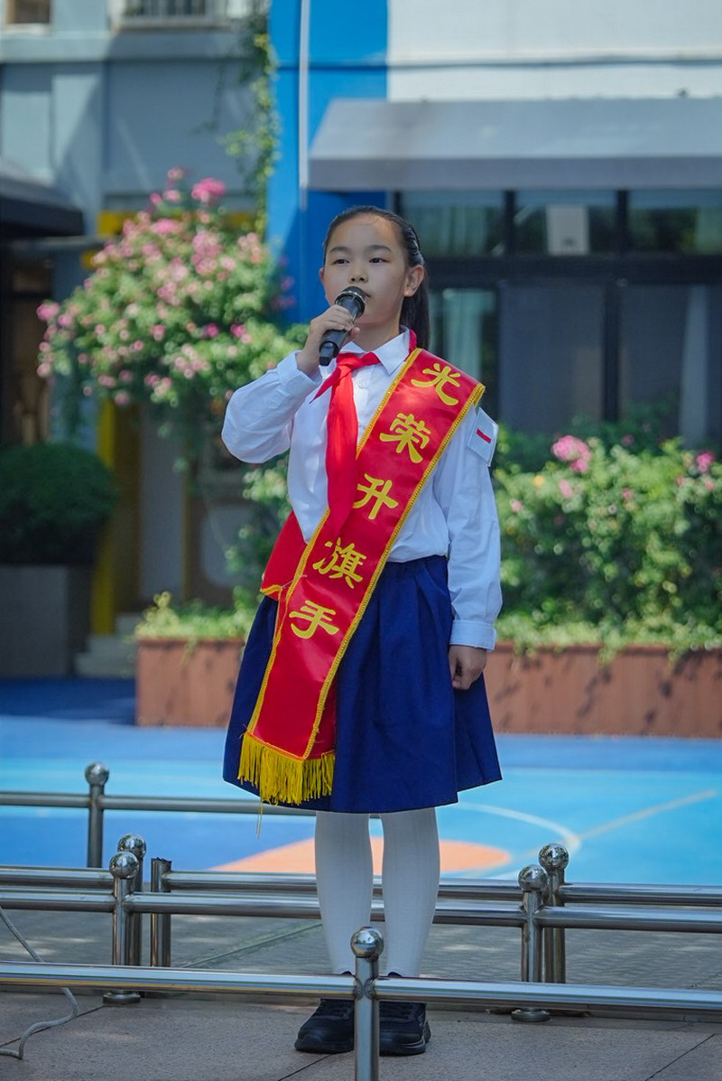 在周一的升旗儀式上,參賽隊員作為光榮升旗手為大家分享比賽的心得與體會。星光中隊向全校展示訓練成果,收獲了全校師生的肯定和贊嘆。
