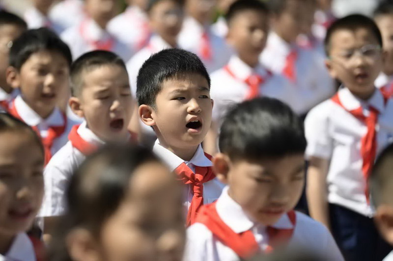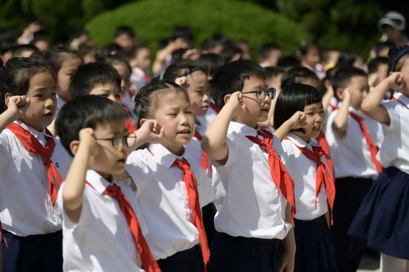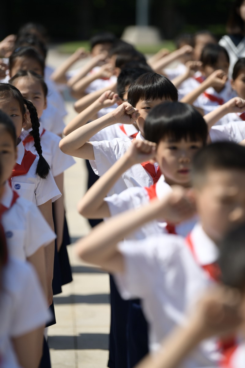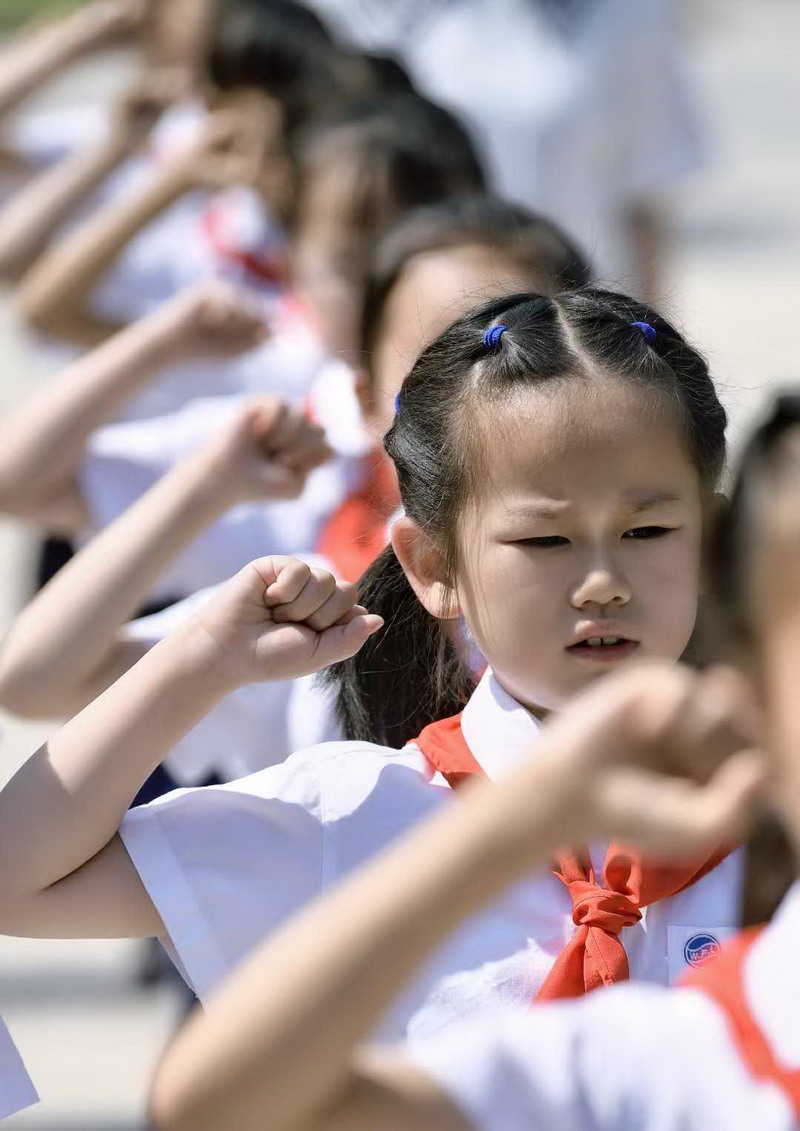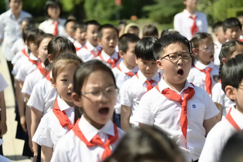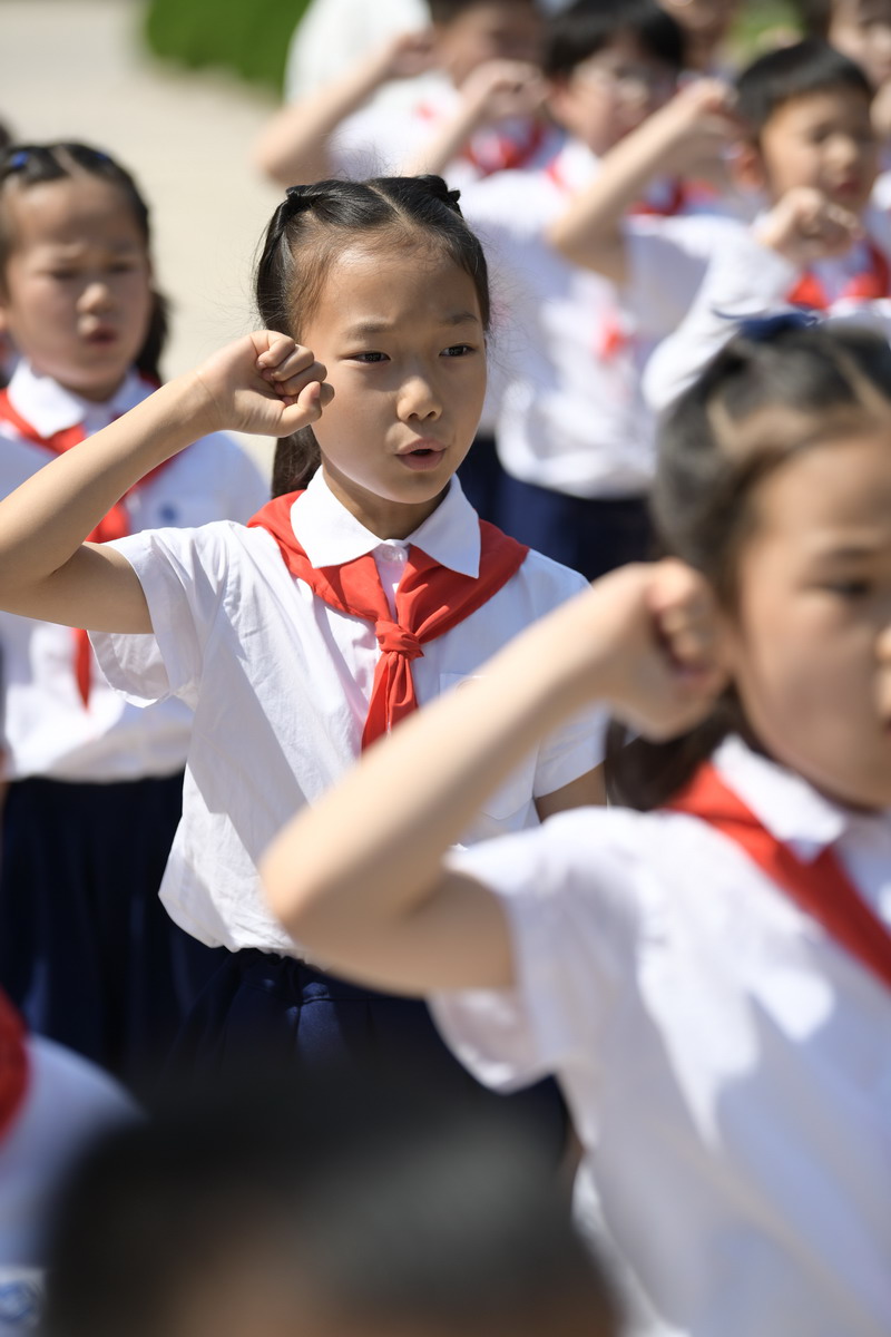 儀式最后,在大隊輔導員胡老師的帶領下,全體少先隊員舉起右拳,莊嚴宣誓:“我熱愛中國共產黨,熱愛祖國,熱愛人民,好好學習,好好鍛煉,準備著:為共產主義事業貢獻力量!”