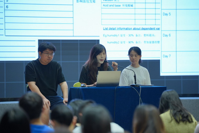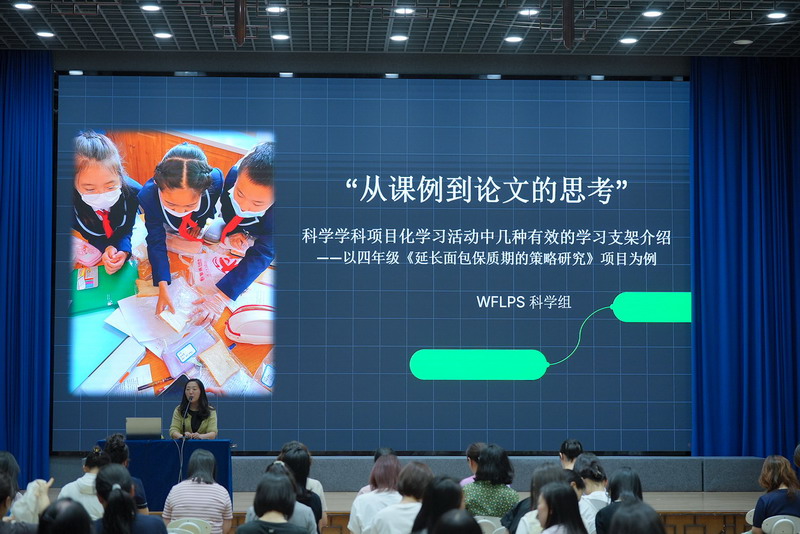 會議由陸素英副校長主持。首先,以陳鈾老師領銜的科學備課組和全體老師們分享了他們的真實案例。從剛開始在教學實踐中對學習支架的不理解、再到文獻檢索,多方了解涵義,再到多維度收集課例和數據,以及最終完成從課例到學術表達的轉換的真實經歷。