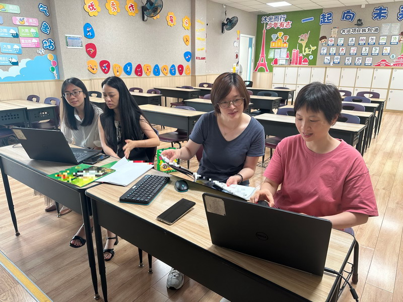 7月2日上午,各備課組繼續集結,聚焦校本學習資料的開發?;诓煌昙壍膶W習目標和學情特點,教師們精選校本學習資料的適配語篇,嚴格遵循統一標準的制作規范,協作完成單元整體設計方案。通過反復研討大組培訓的示范案例,各年級最終形成了符合年段特征的"閱讀四表"初稿,為新的英語校本教學資源進行了首輪開發。